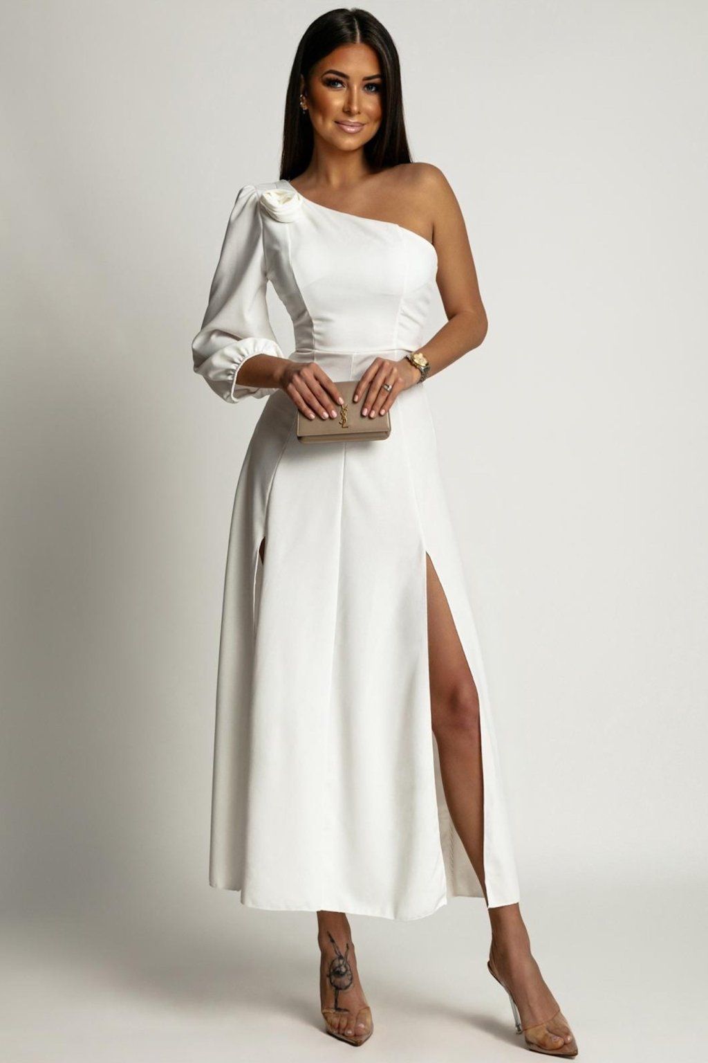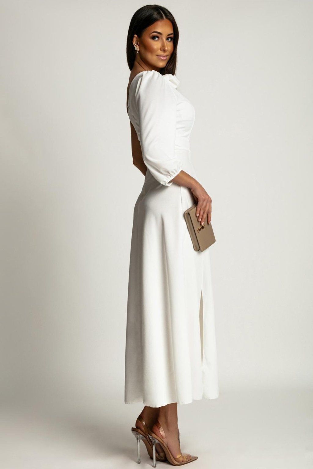 Bílé midi šaty s rozparky