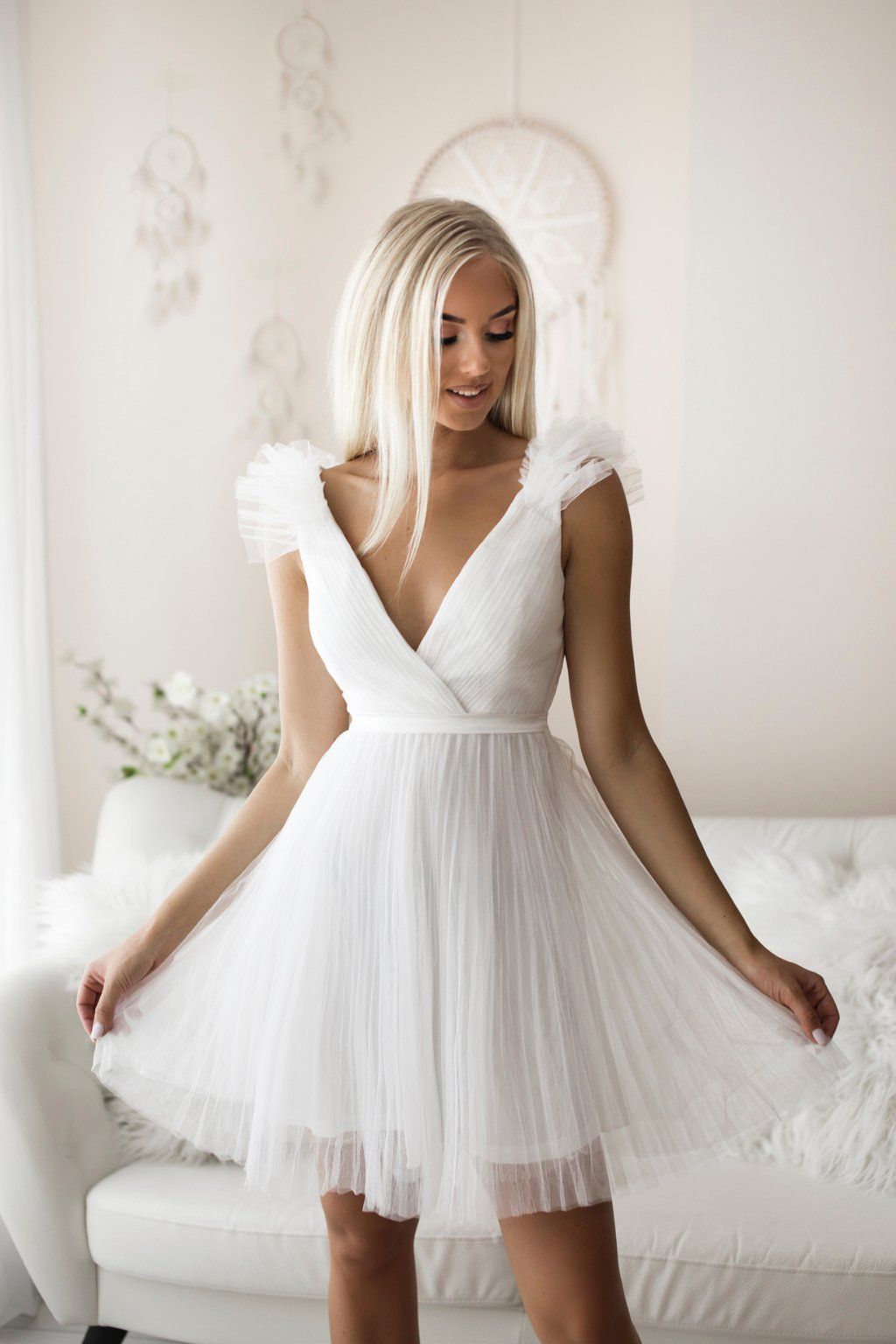 Bílé tylové mini šaty