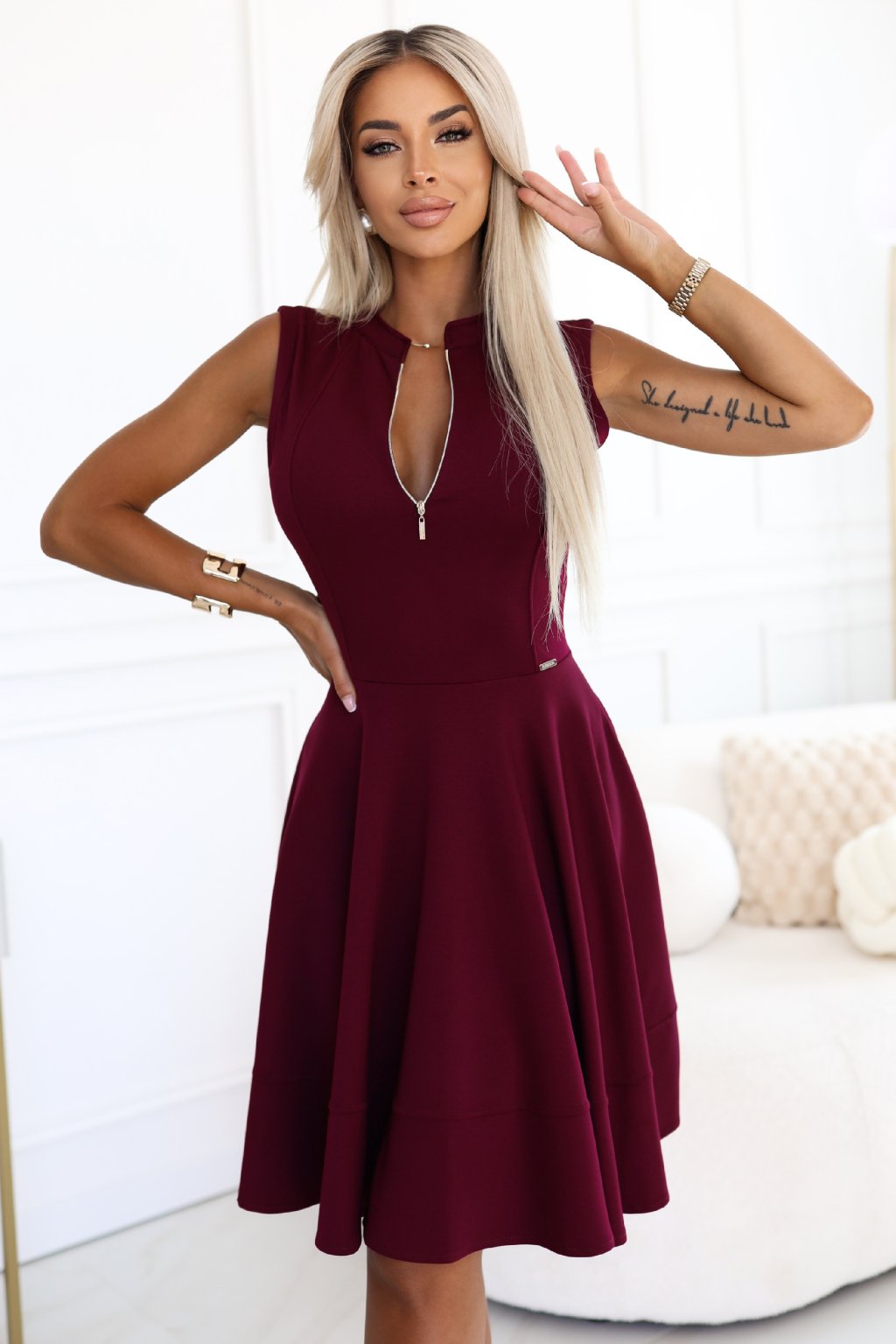 Bordové krátké šaty s áčkovou sukní