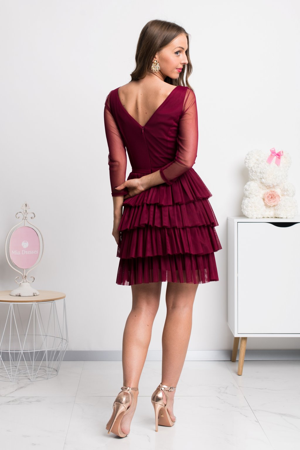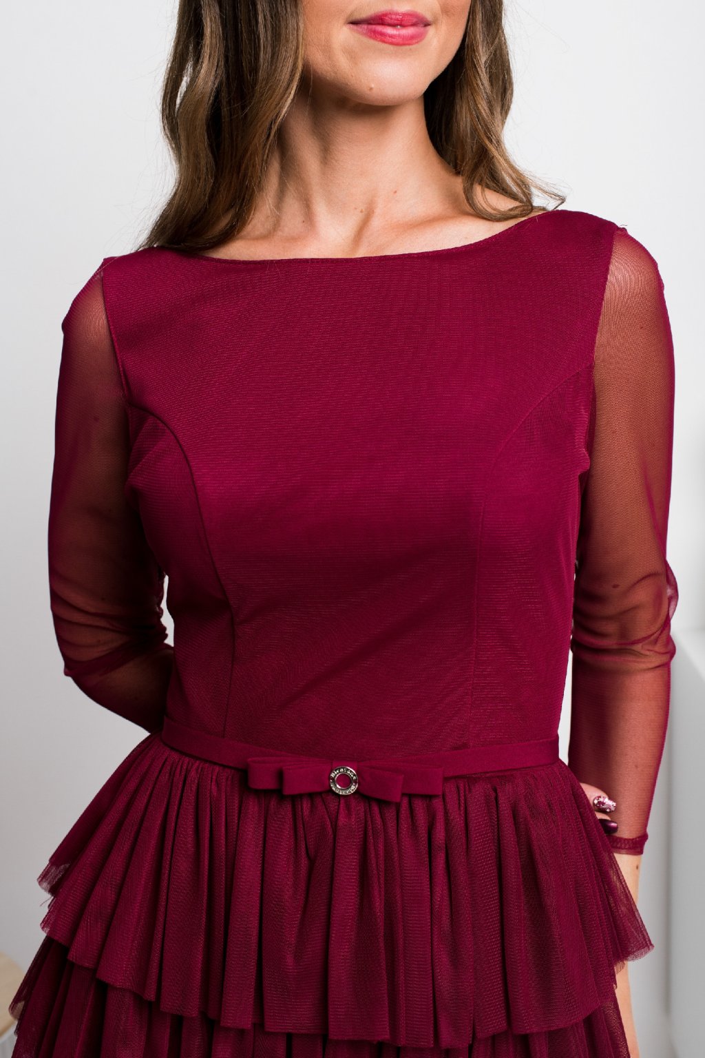V těchto šatech budete opravdu okouzlující. Průsvitný detail v podobně rukávů dodává šatům šmrnc a romantická nařasená sukně podtrhne vaši něžnost a půvab. Vzadu se zapínají zipem. </ P>