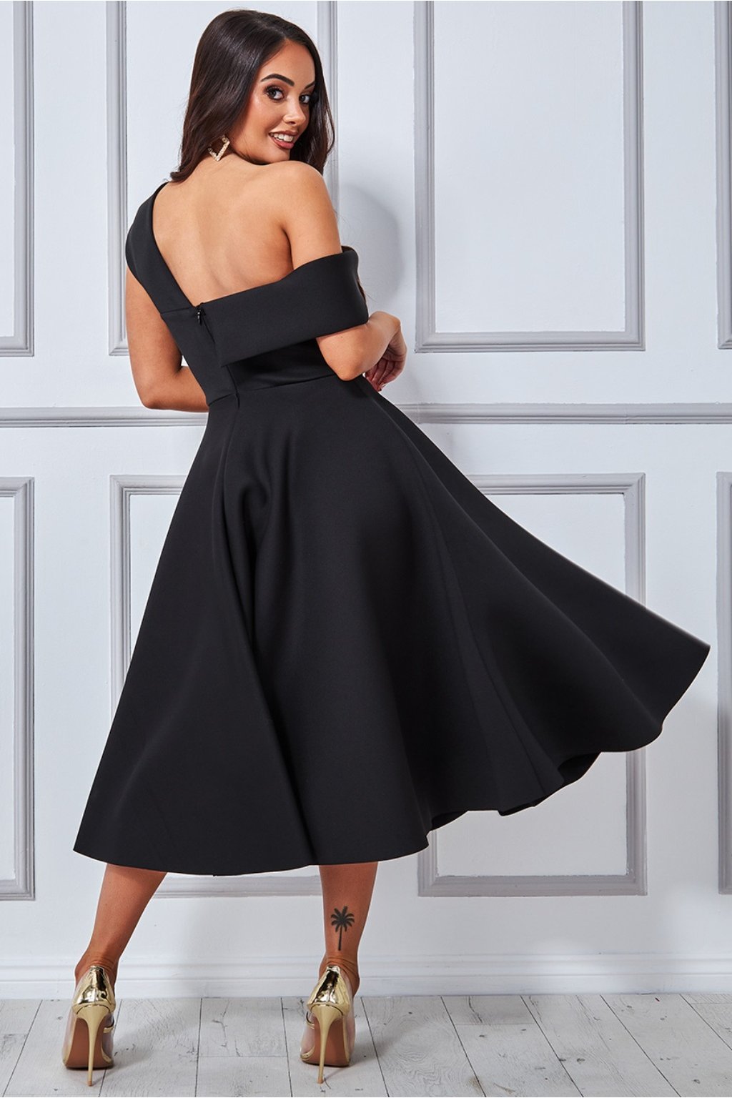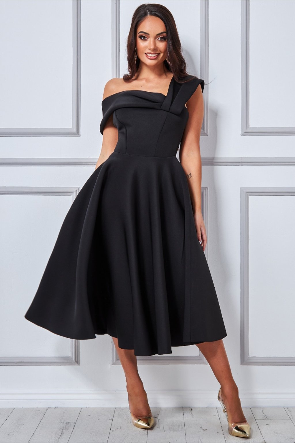Černé midi šaty s áčkovou sukní