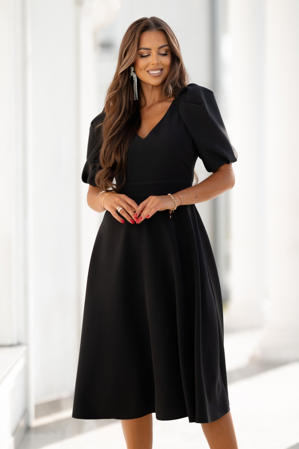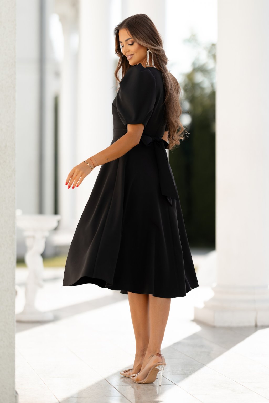 Šaty jako stvořené pro výjimečné chvíle. Jejich něžný střih s jemně nadýchanými rukávy a ladným výstřihem působí něžně a žensky. Plynule rozšířená sukně se při pohybu krásně vlní, čímž dodává celému modelu lehkost a eleganci. Ideální pro romantická setkání, svatby či chvíle, kdy se chceš cítit jako princezna. Vzadu se zapínají zipem.