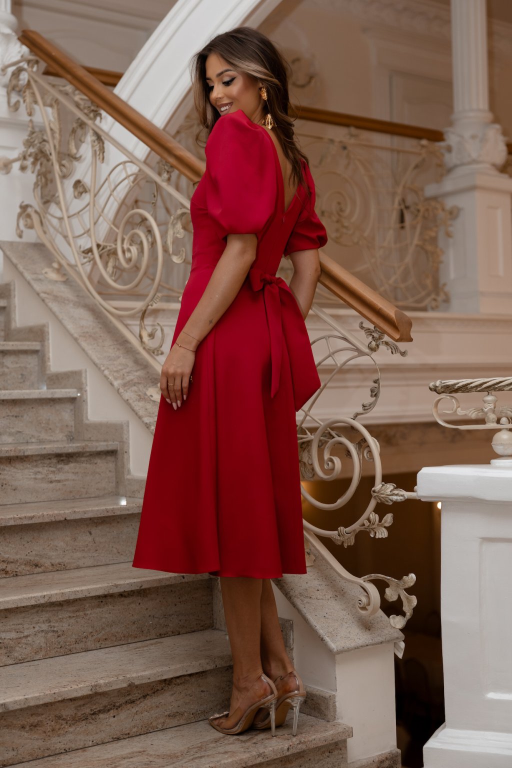 Červené midi šaty s balónovými rukávmi (Velikost L)