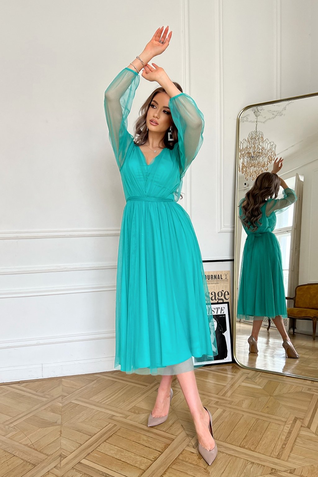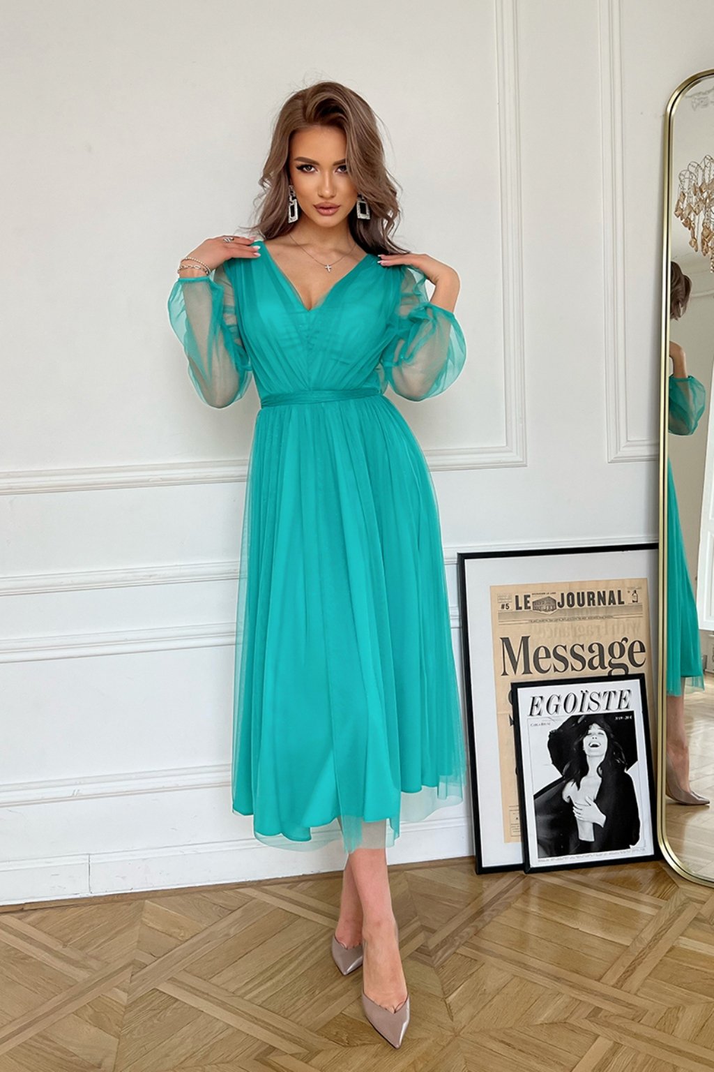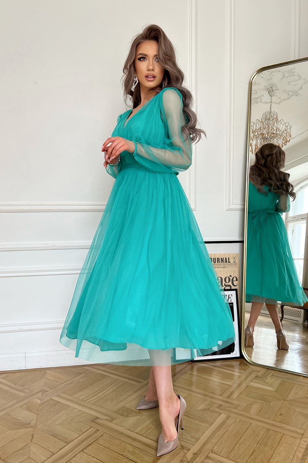 Něžné tylové šaty, které se postarají o elegantní a zároveň romantický vzhled. Vzadu se zapínají zipem.