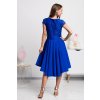 Modré asymetrické šaty s krajkou a krátkými rukávy