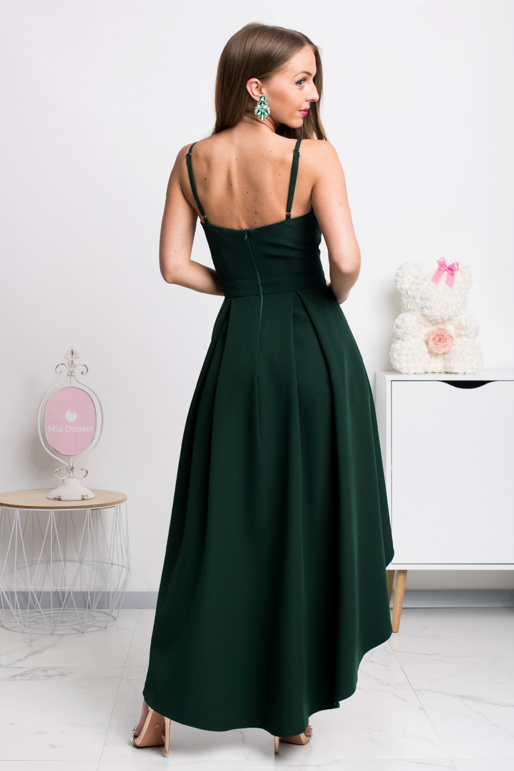 Asymetrické střihy jsou velmi oblíbené a také si drží své přední místo ve světě módy. Šmrnc těmto šatům dodává smaragdová barva a nadýchaná sukně. Výhodou šatů jsou nastavitelná ramínka a k pohodlí po celou protančila noc přispěje příjemný hladký materiál. Vzadu se šaty zapínají zipem. P>