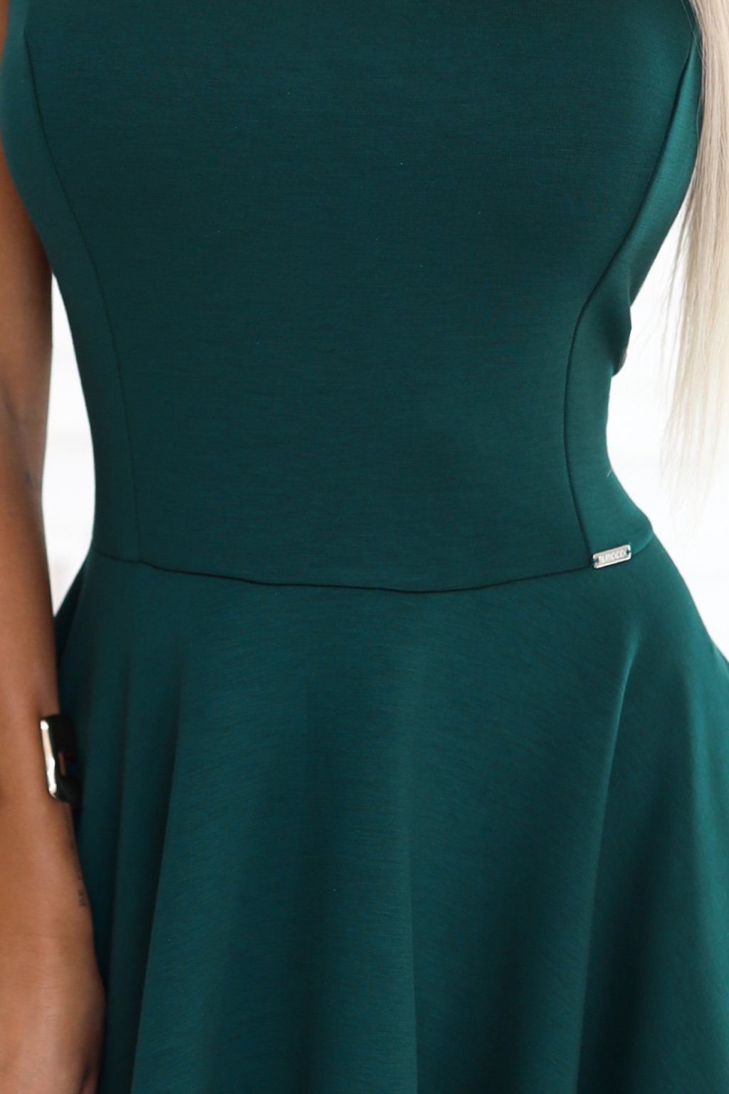 Smaragdové krátké šaty s áčkovou sukní