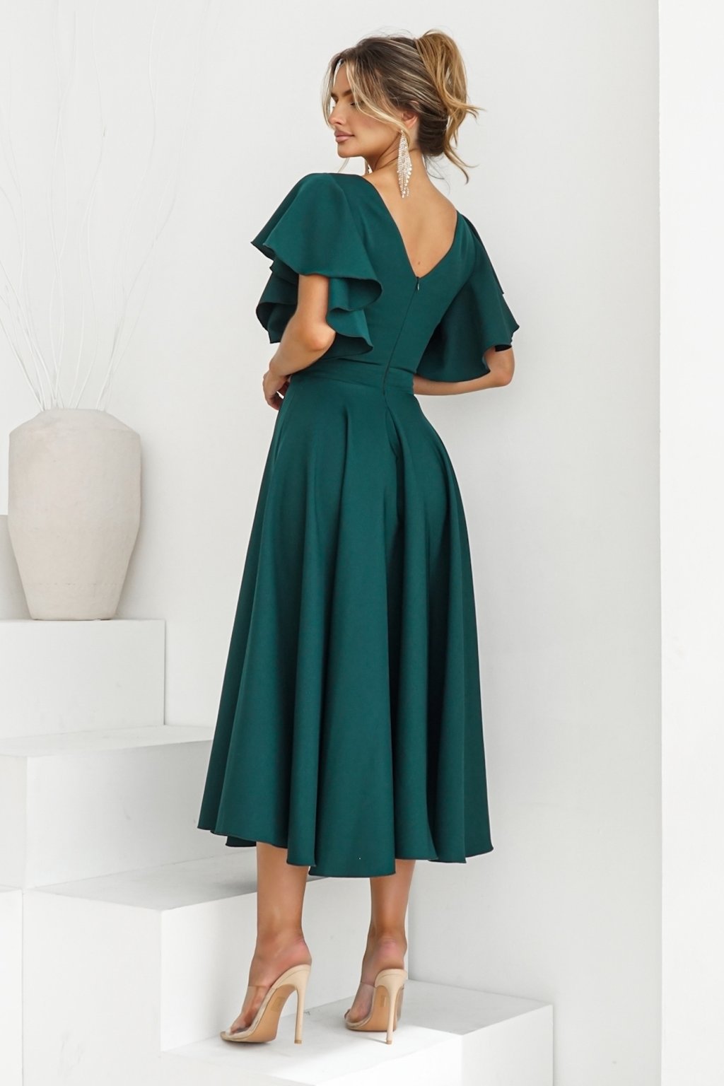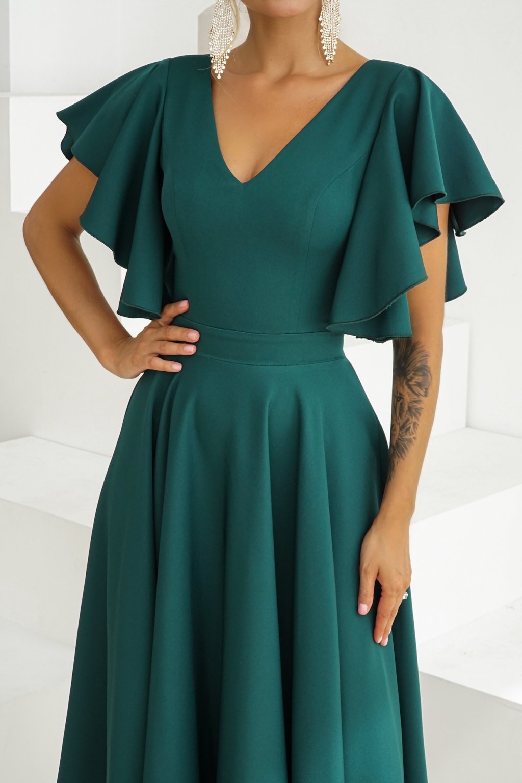 V těchto jemně třpytivých šatech zaručeně přilákáte každý pohled. Krásná áčková sukně a romantické volánové rukávy dohromady vytvoří něžný a elegantní vzhled. Vzadu se šaty zapínají zipem.