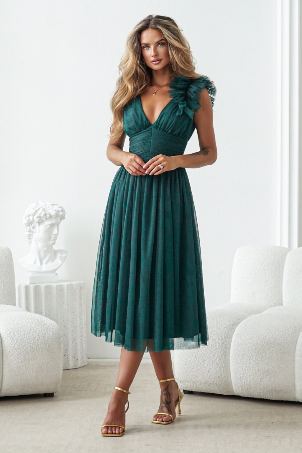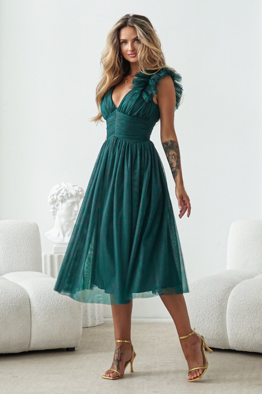 Smaragdové tylové midi šaty