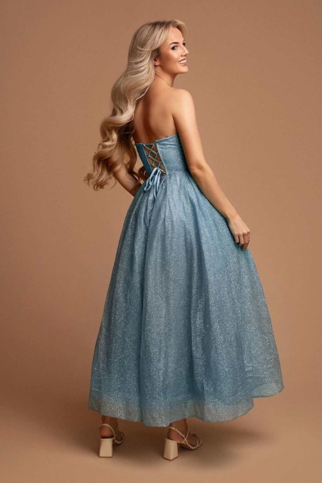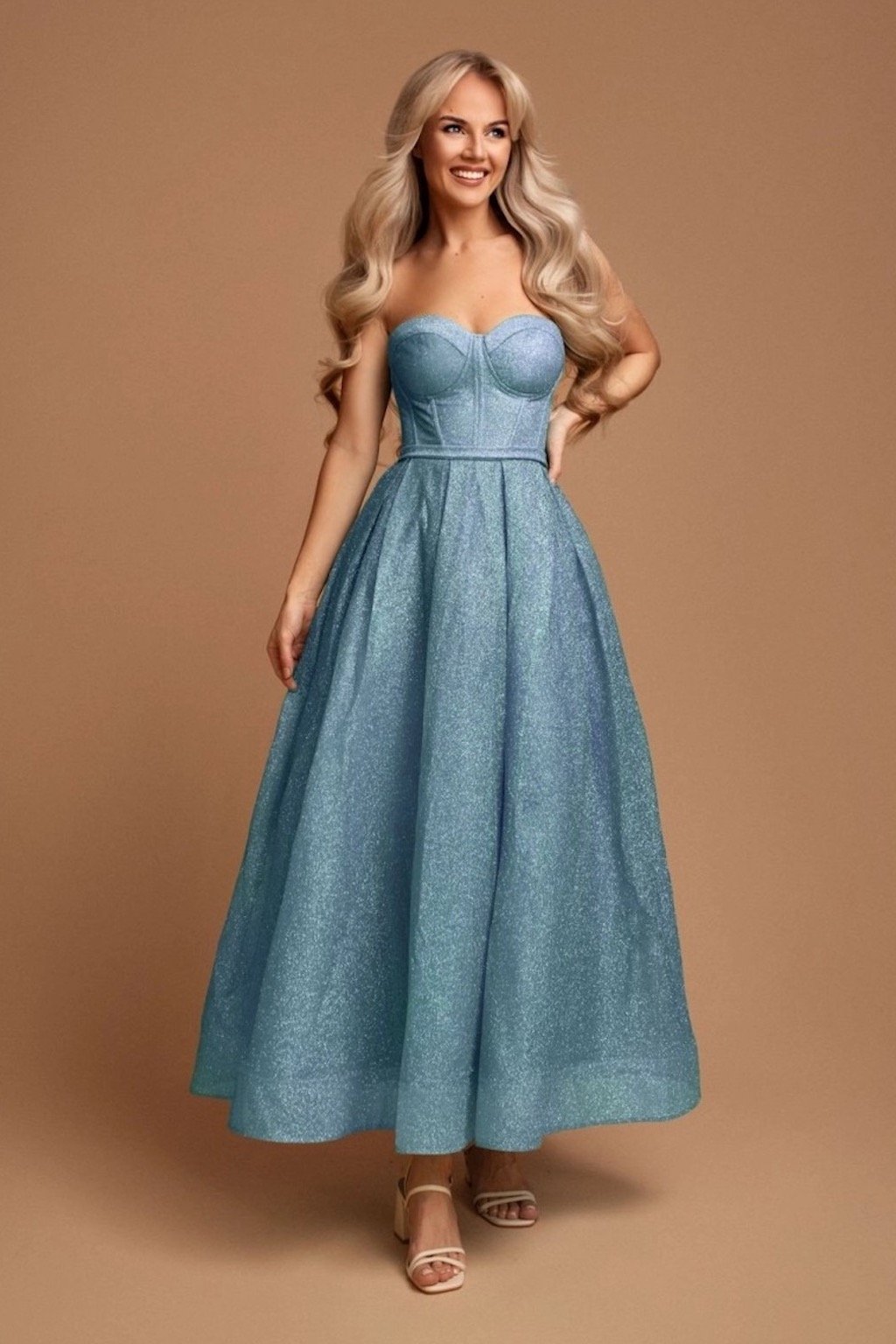 Zaujměte na první pohled v těchto okouzlujících midi šatech, které jsou celé poseté třpytkami a nádherně odrážejí světlo při každém pohybu. Na prsou jsou vyztužené, vzadu se nachází šněrovačka, díky které si šaty dokonale přizpůsobíte své postavě. Součástí jsou i odnímatelná ramínka, takže je můžete nosit s nimi i bez nich – přesně tak, jak se budete cítit nejlépe. Ideální volba pro výjimečný večer, oslavu či ples, kde chcete zazářit. Třpytky nejsou všity do materiálu, přirozeně opadávají.