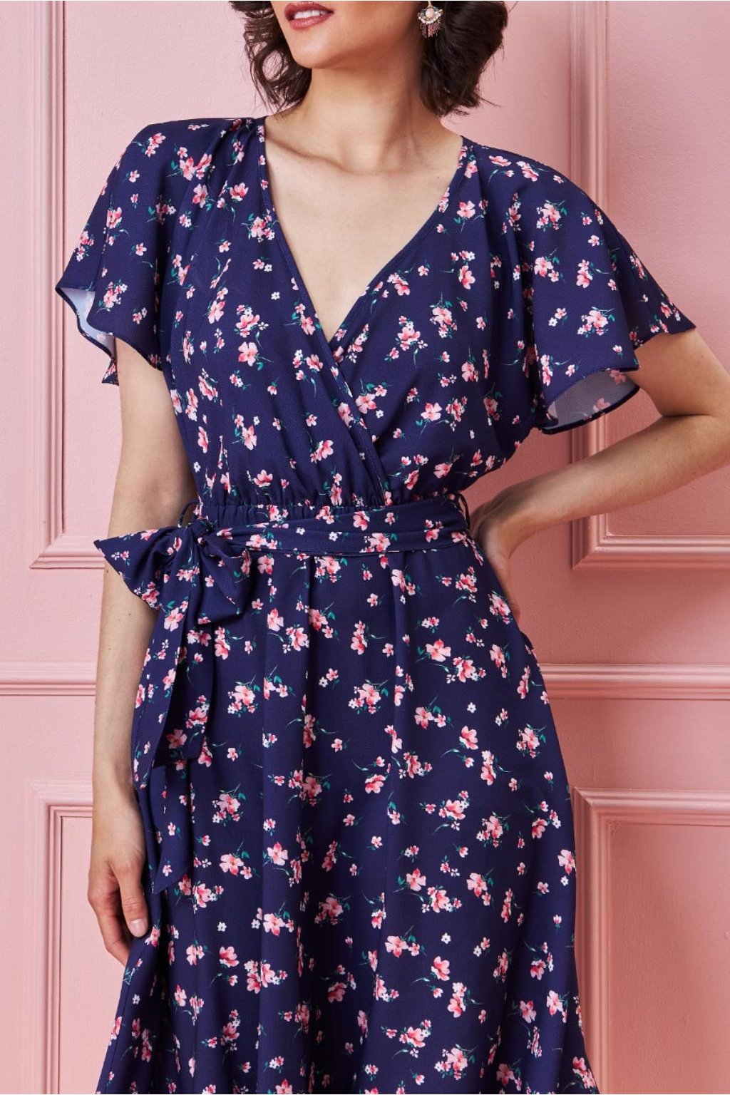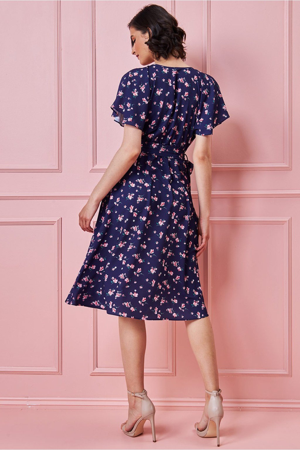 Tmavě modré midi šaty s květinkami