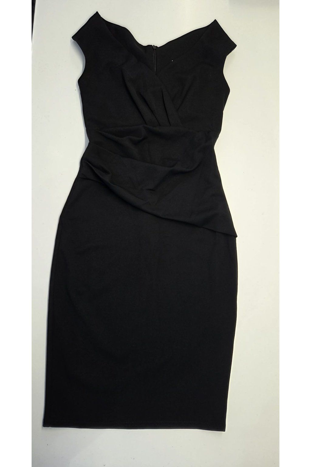 Přiléhavé midi šaty z pohodlného elastického materiálu zdobí výstřih ve tvaru písmene V. Ten vám rozzáří krásu ramen a klíčních kostí. V oblasti bříška je nasbíraná látka, která schová to, co je třeba. Šaty jsou přes prsa podšité a zapínají se na zadní straně.