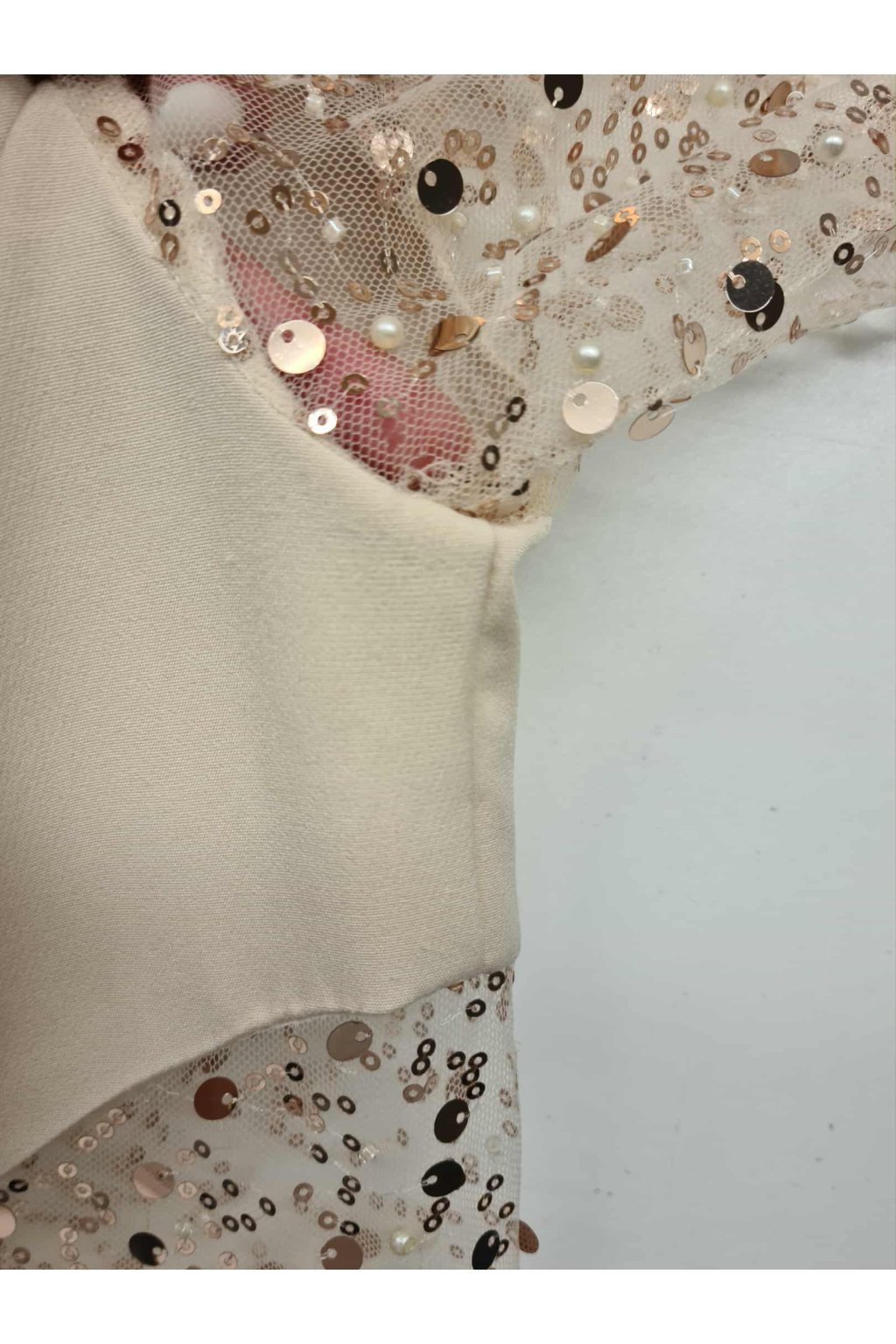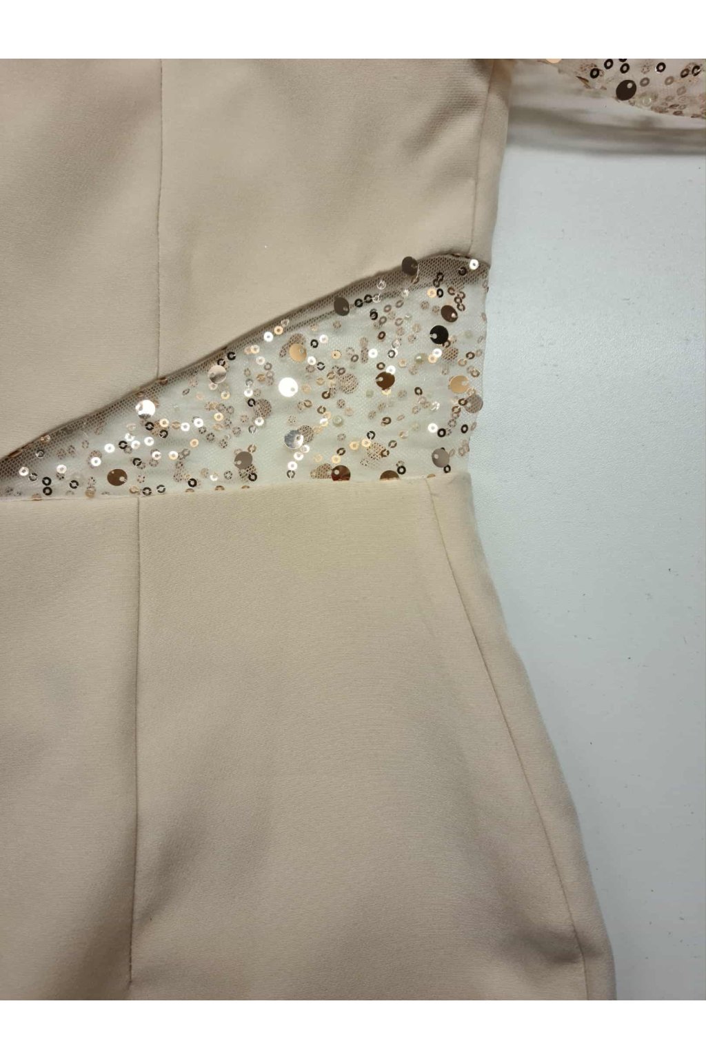 Poškozené zboží - Béžové krátké šaty se třpytivým rukávem