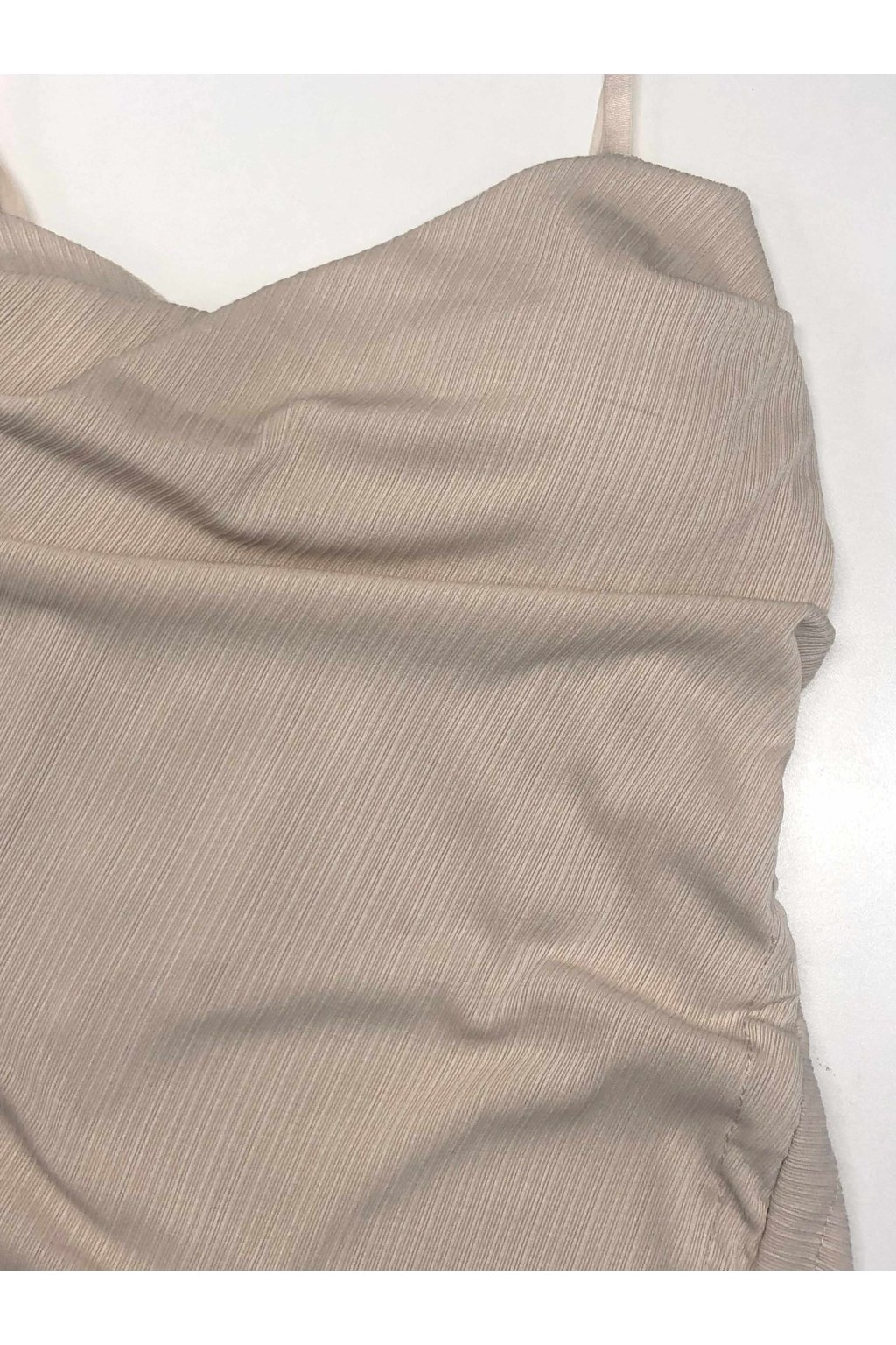 Poškozené zboží - Béžové přiléhavé midi šaty