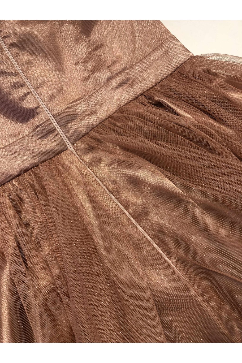 Poškozené zboží - Béžové třpytivé tylové midi šaty