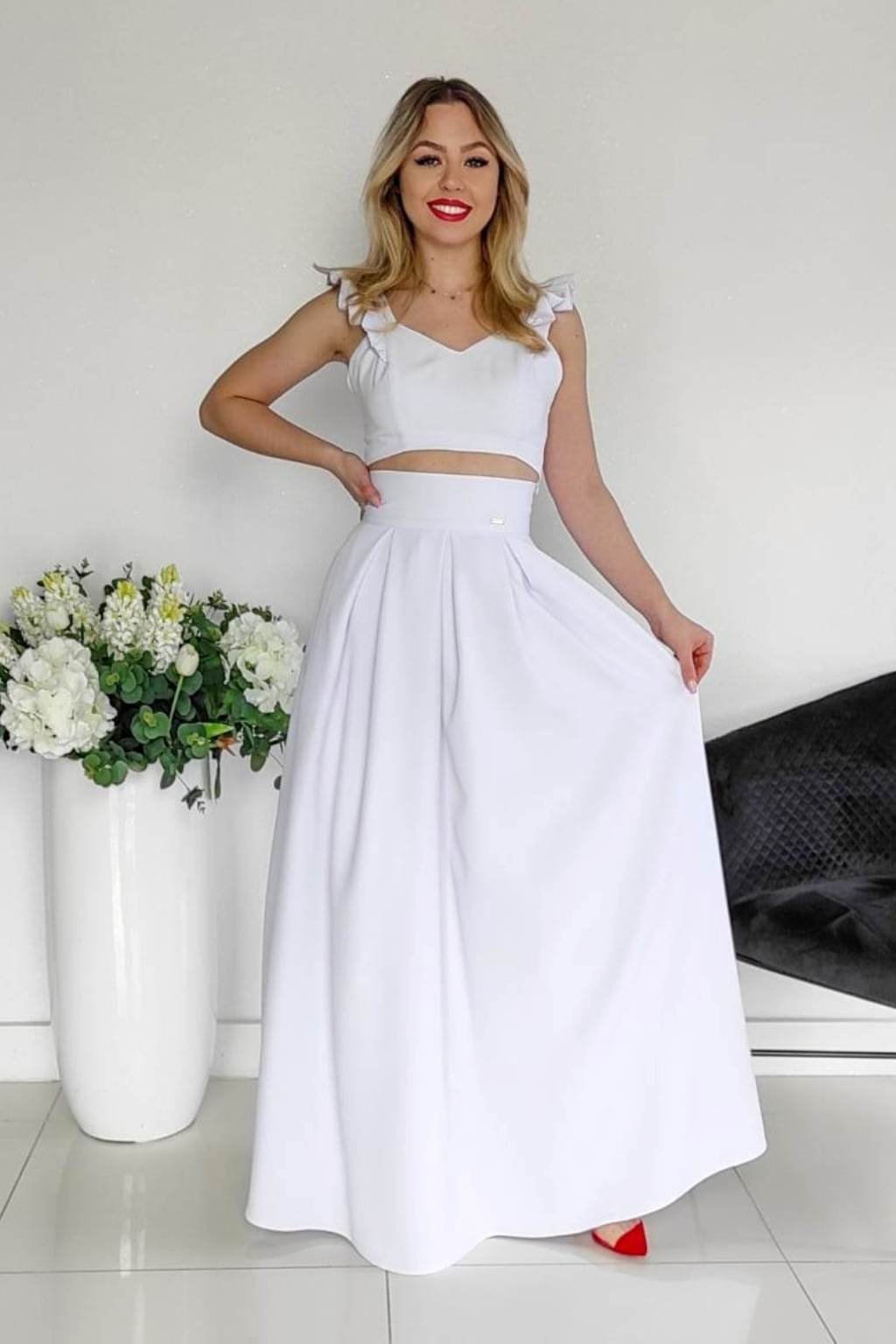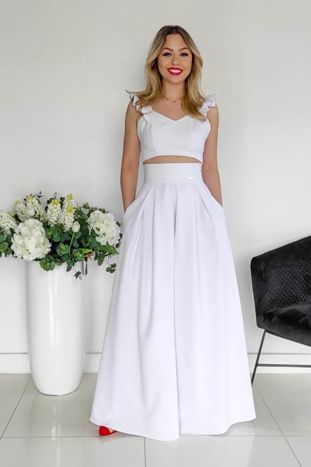 Tato dlouhá elegantní sukně se stane tvým milovaným kouskem. Krásně si drží oblíbený áčkový tvar díky spodničce, na které je našitý tyl. Má vyšší pas, který schová všechny nedokonalosti, podtrhne ženské křivky a vytvaruje štíhlejší pas. Vzadu se zapíná zipem, materiál je příjemný, hladký a praktickým doplňkem jsou kapsy.
