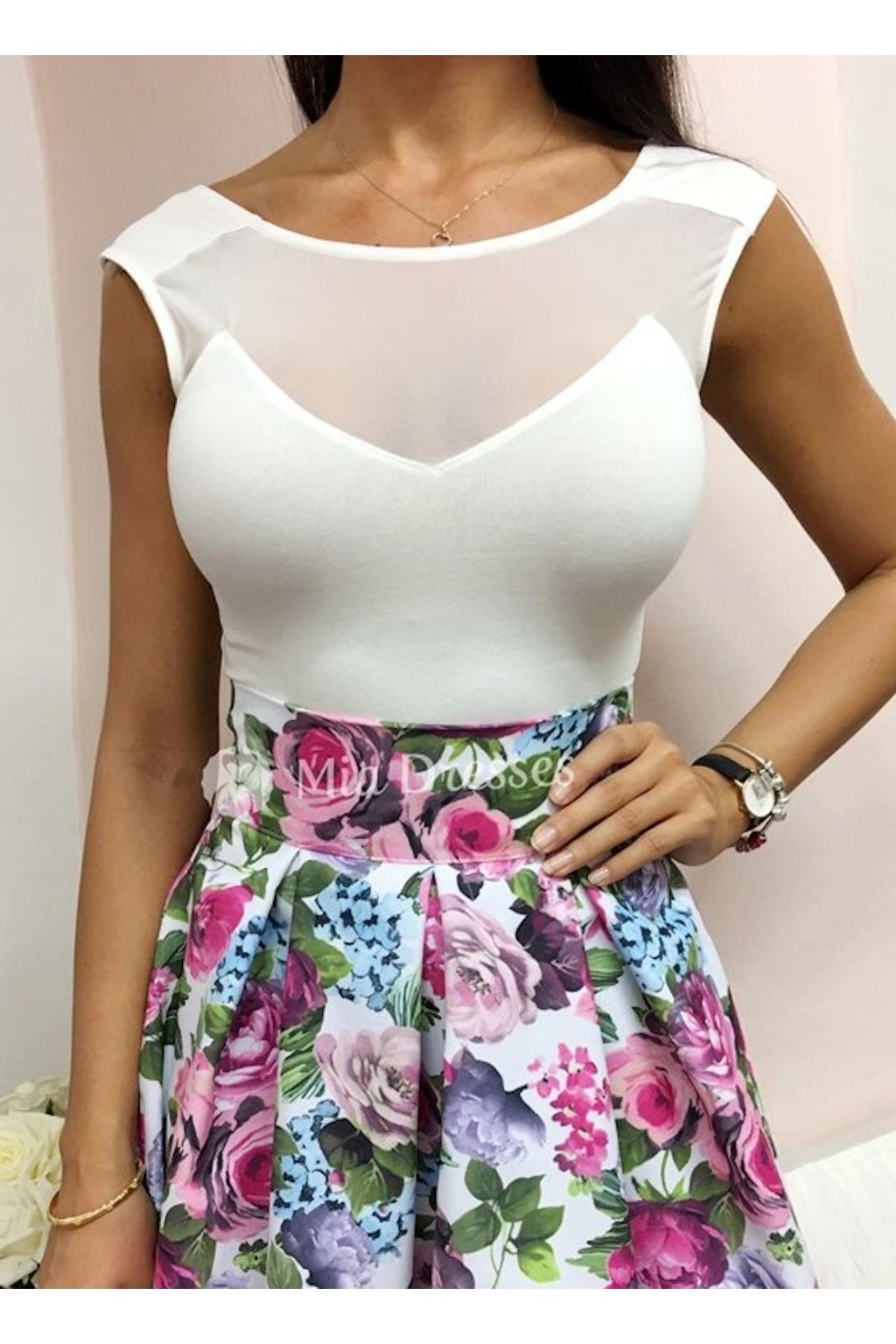 Toto body je díky jednoduchému střihu snadno kombinovatelné s výraznými vícebarevnými sukýnkami. Dekolt zdobí tyl a materiál je elastický, přizpůsobivý.