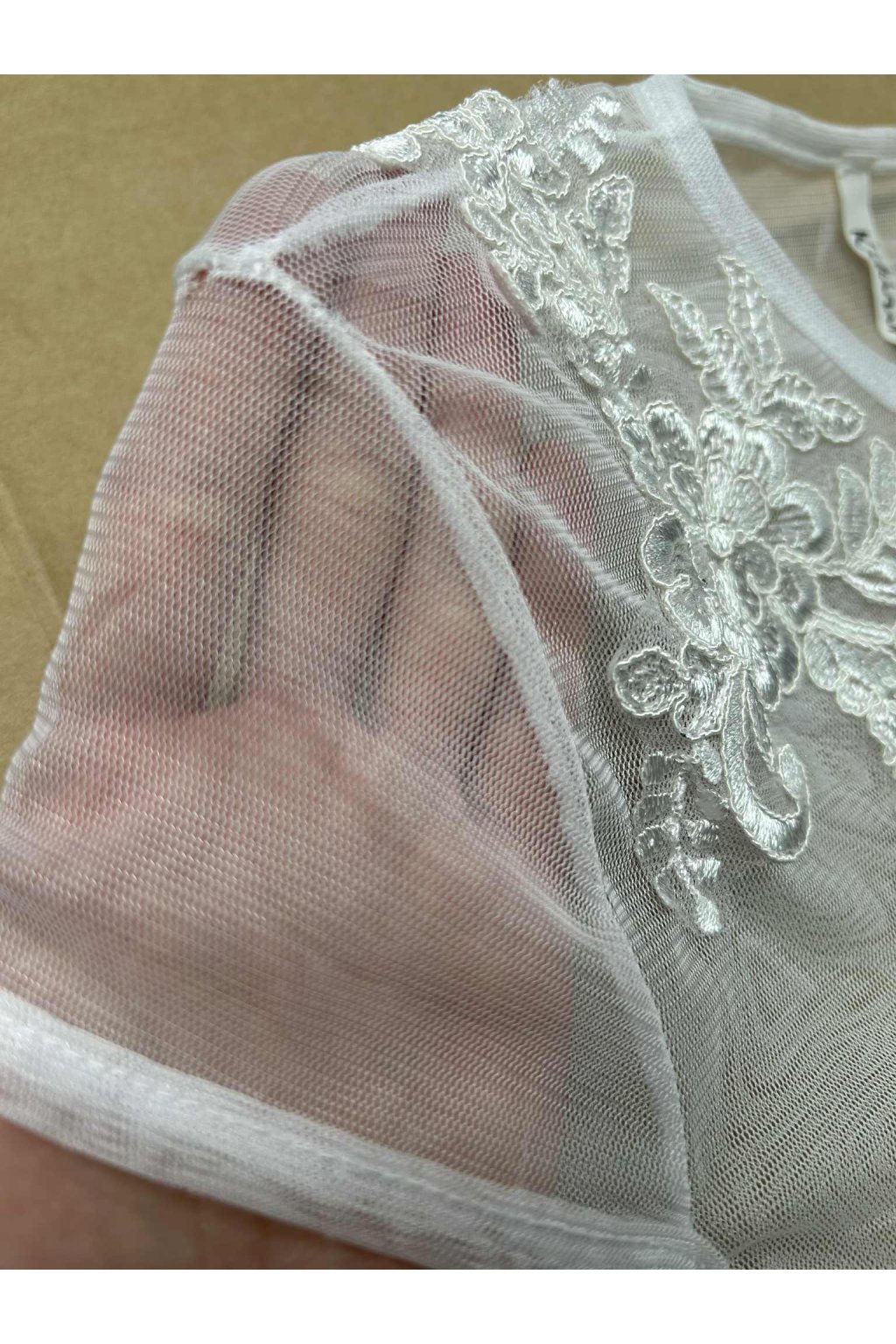 Poškozené zboží - Bílé body s tylem a vyšívanými květinkami