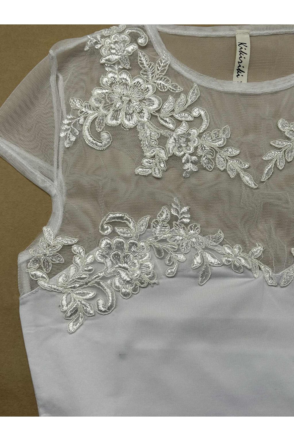 Poškozené zboží - Bílé body s tylem a vyšívanými květinkami