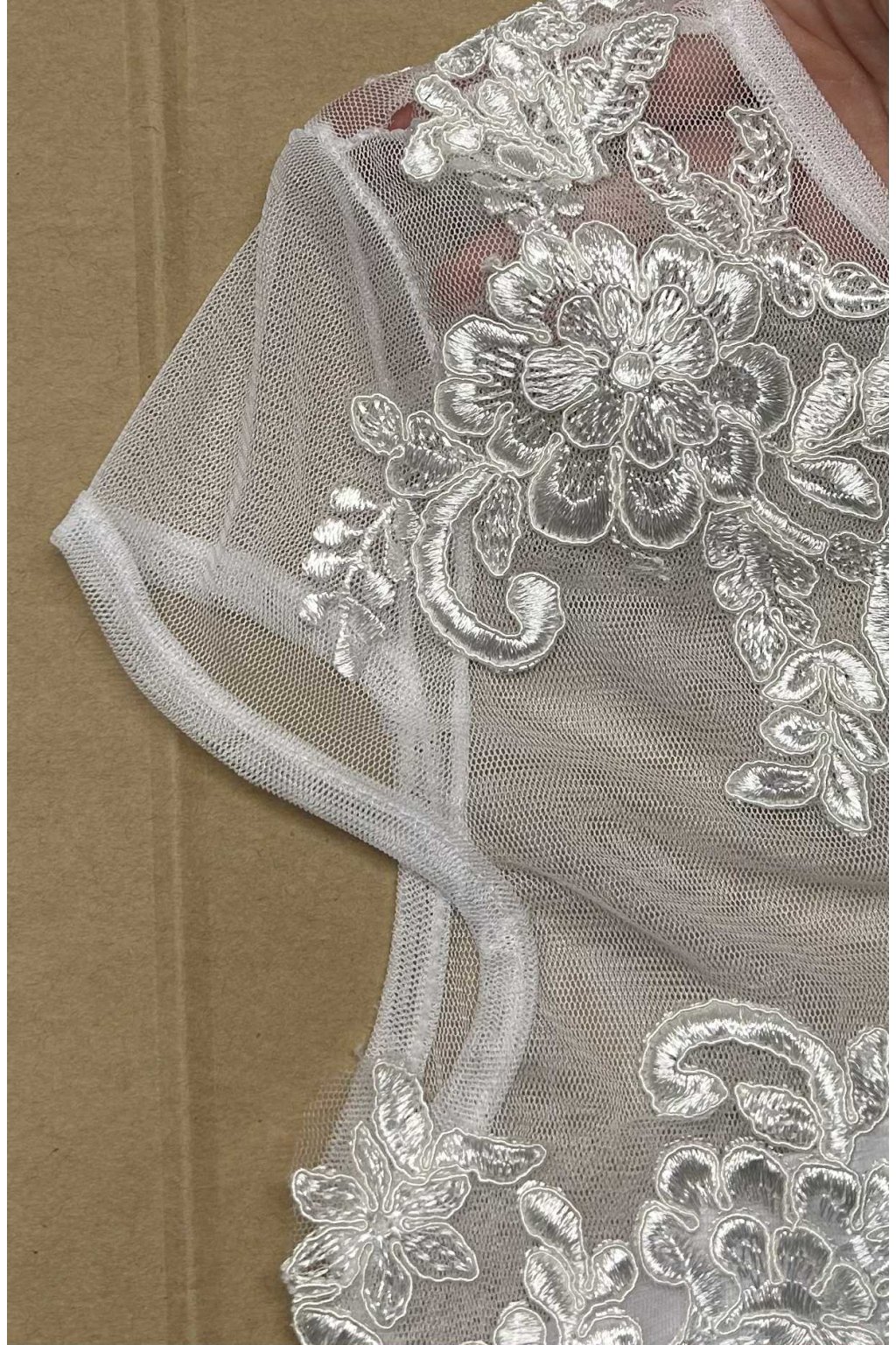 Poškozené zboží - Bílé body s tylem a vyšívanými květinkami