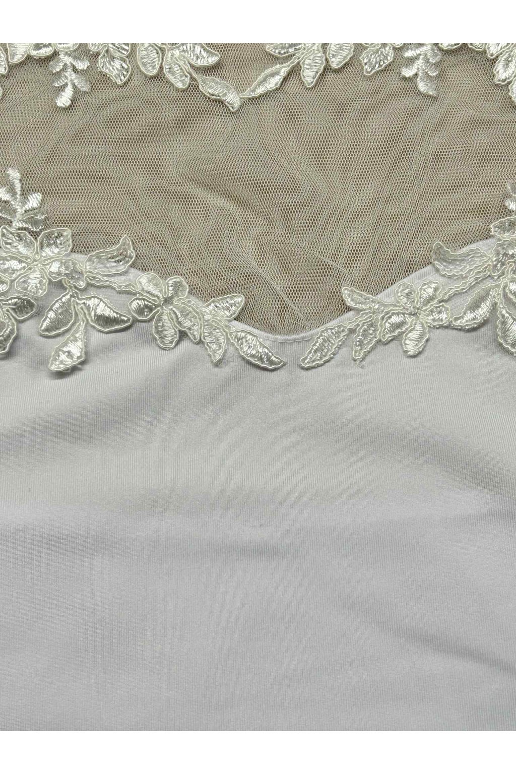 Příjemně elastické body, které zdobí převážně týlní část a něžně tak odkrývá krásu ženského těla. Tyl je doplněn o našité květiny, které mu dodávají romantický look.