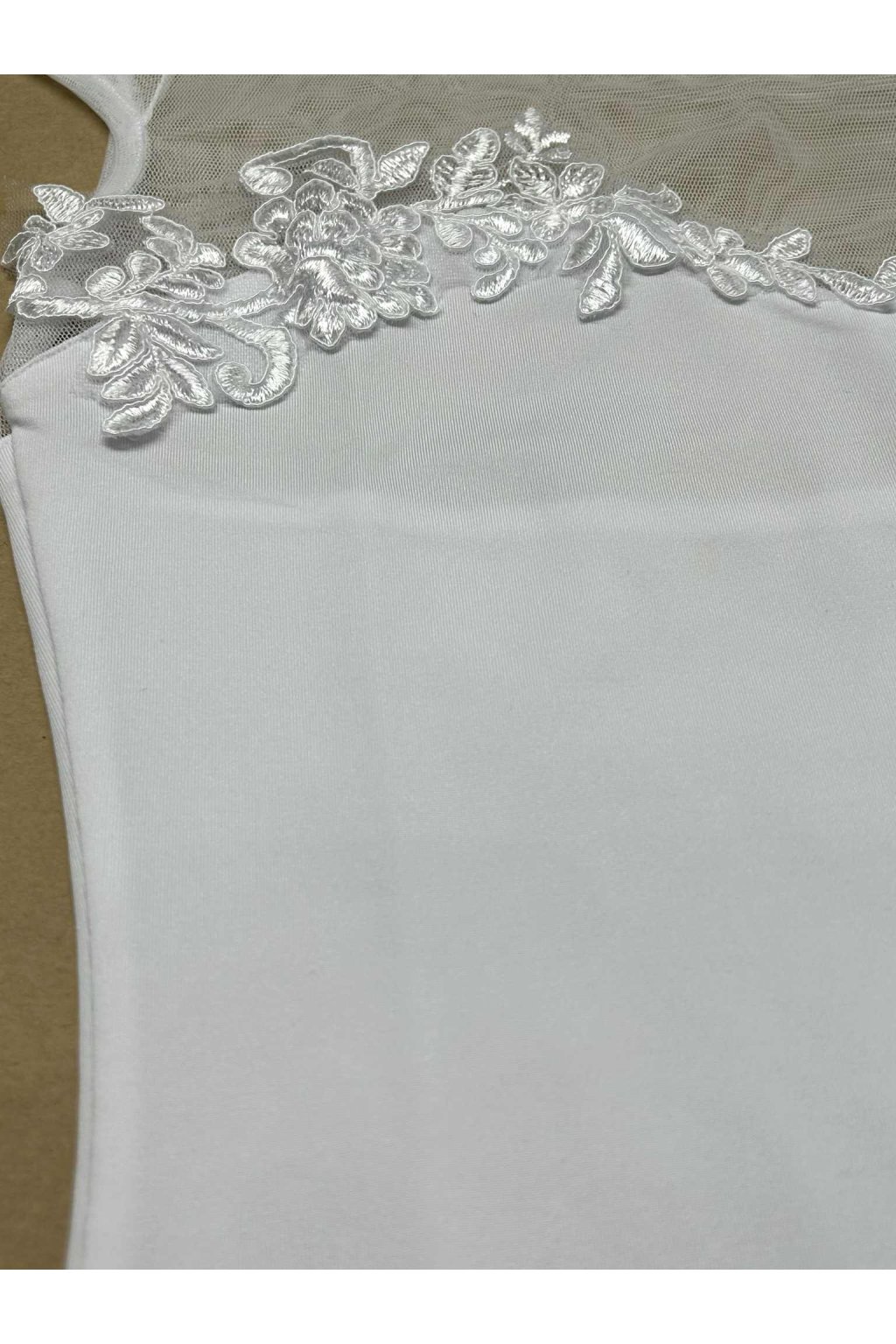 Příjemně elastické body, které zdobí převážně týlní část a něžně tak odkrývá krásu ženského těla. Tyl je doplněn o našité květiny, které mu dodávají romantický look.