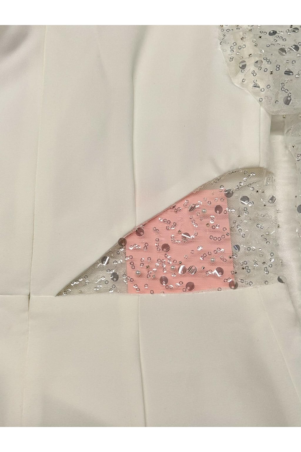 Poškozené zboží - Bílé přiléhavé šaty se třpytivým rukávem