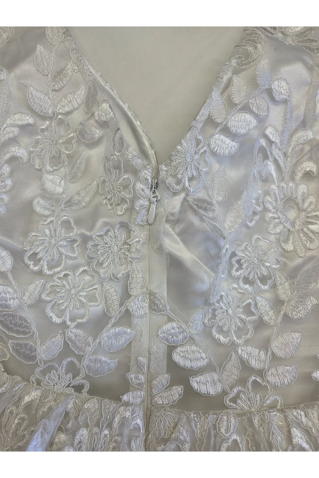 POZOR! Toto zboží je poškozeno, z tohoto důvodu má sníženou cenu. Šaty mají malé černé skvrny a díru na zádech.