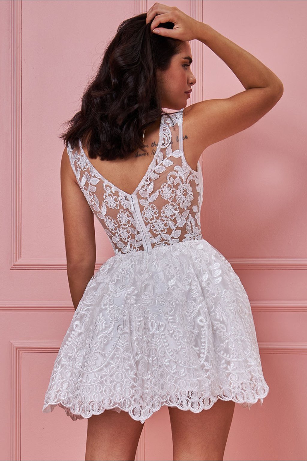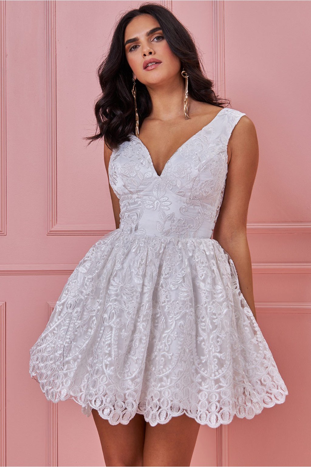 Poškozené zboží - Bílé společenské mini šaty s krajkou