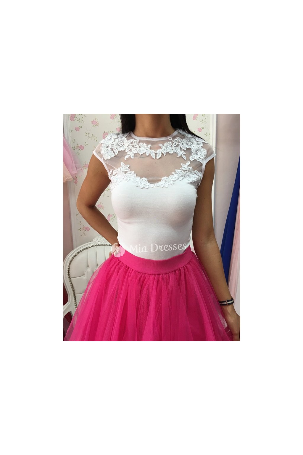 Poškozené zboží - Bílý top se síťkou zdobenou kvítky