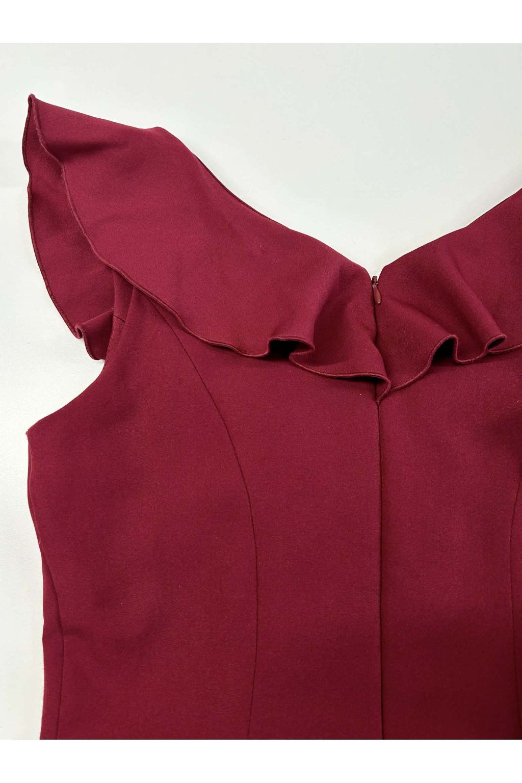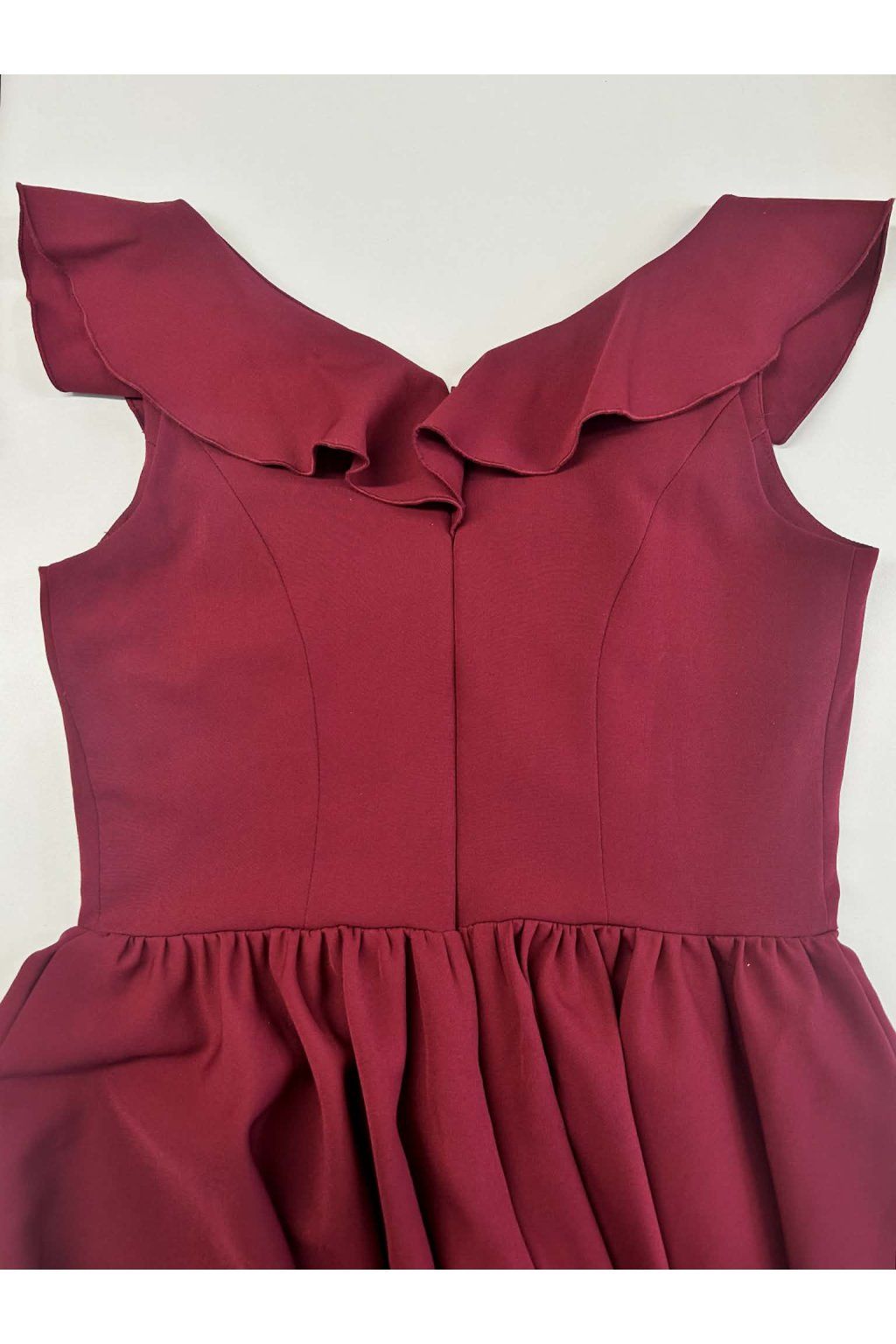 Poškozené zboží - Bordové krátké šaty s volánky a áčkovou sukní
