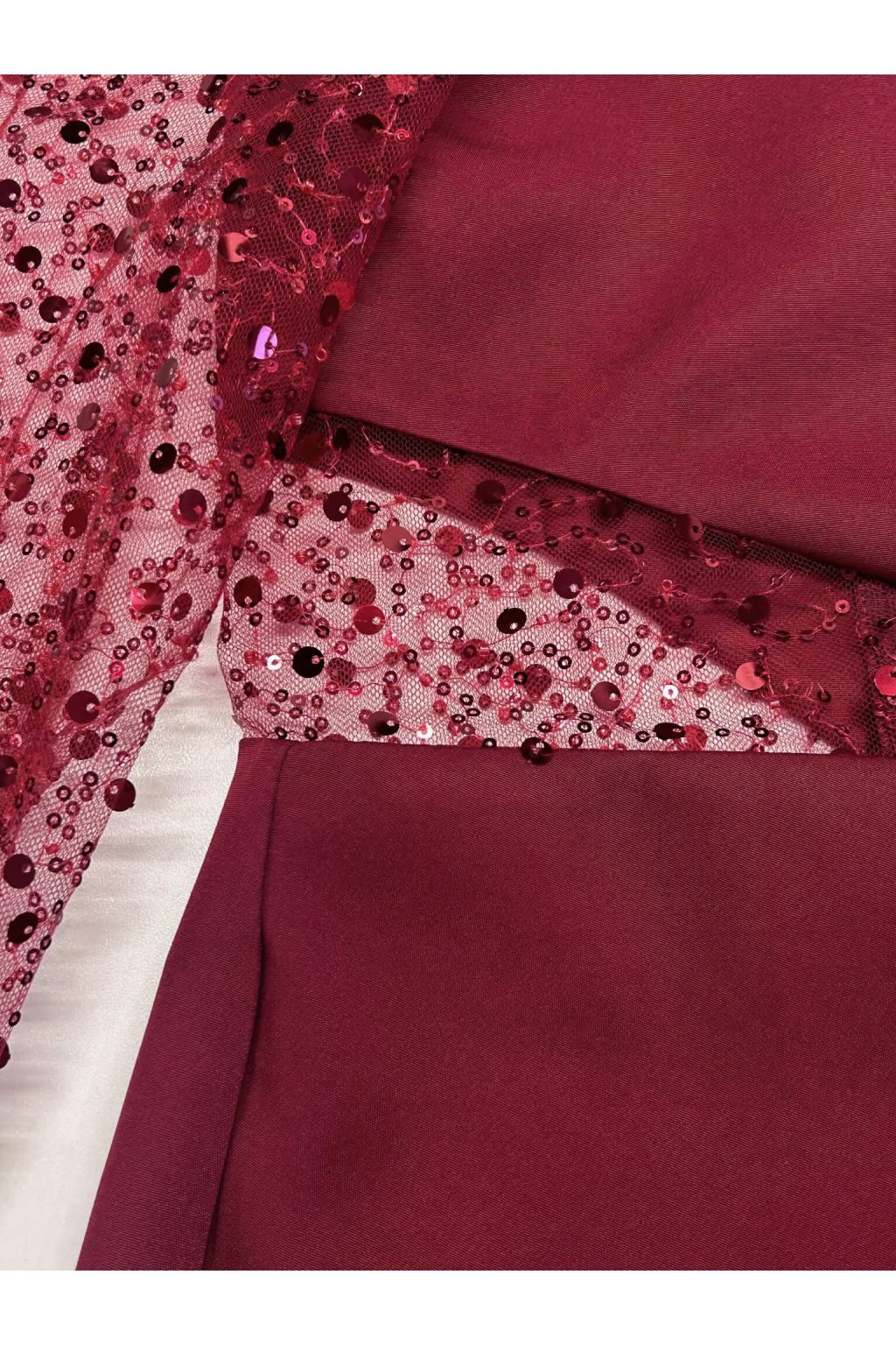 Poškozené zboží - Bordové krátké šaty se třpytivým rukávem