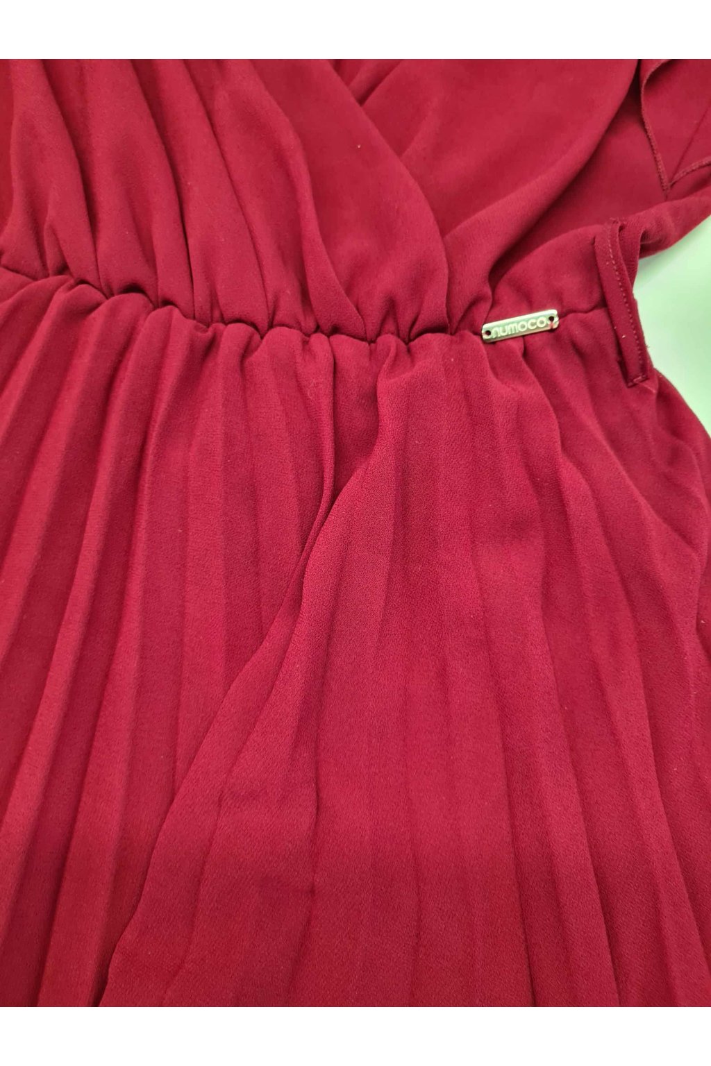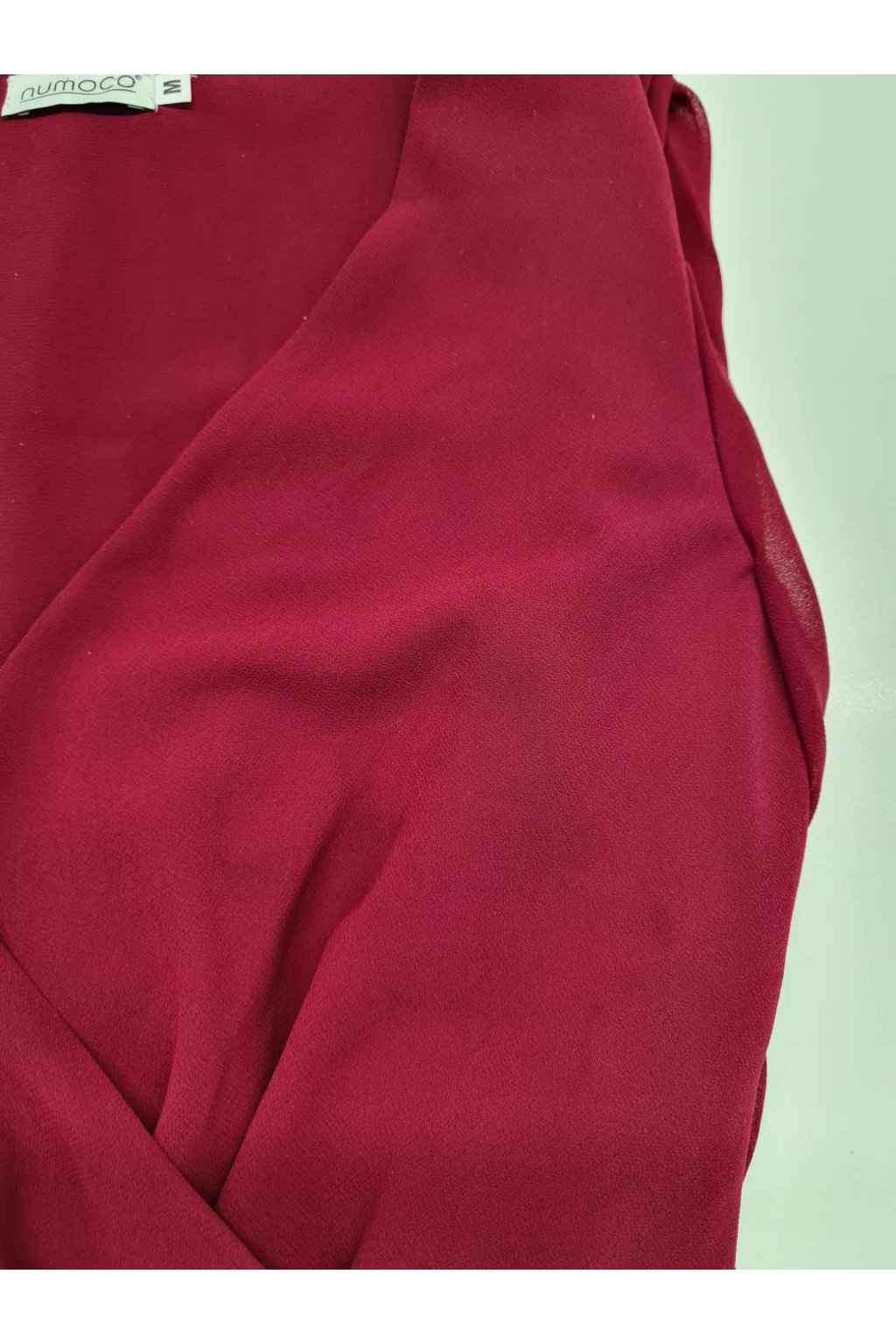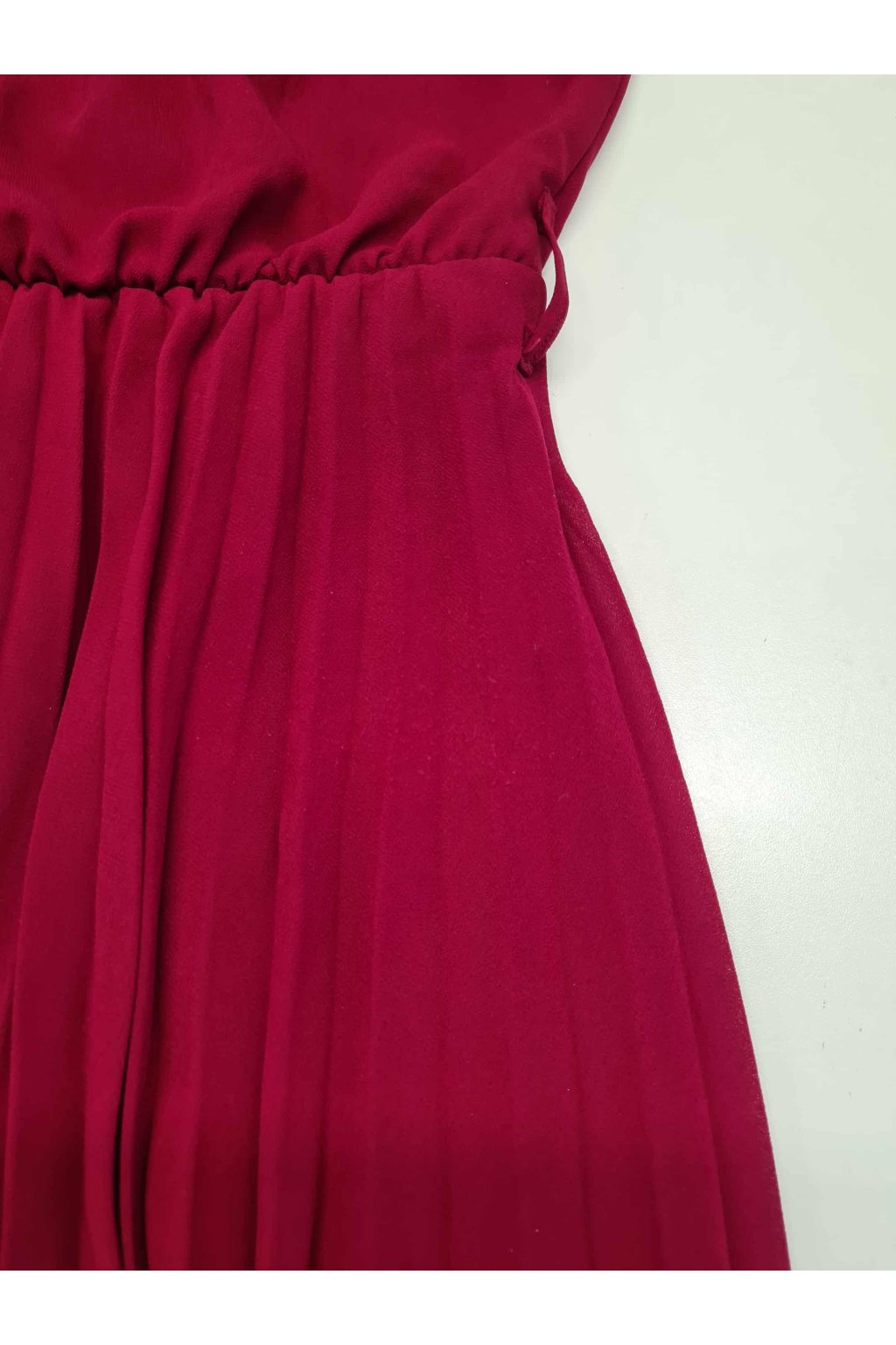 Poškozené zboží - Bordové midi šaty s volánkovými rukávy