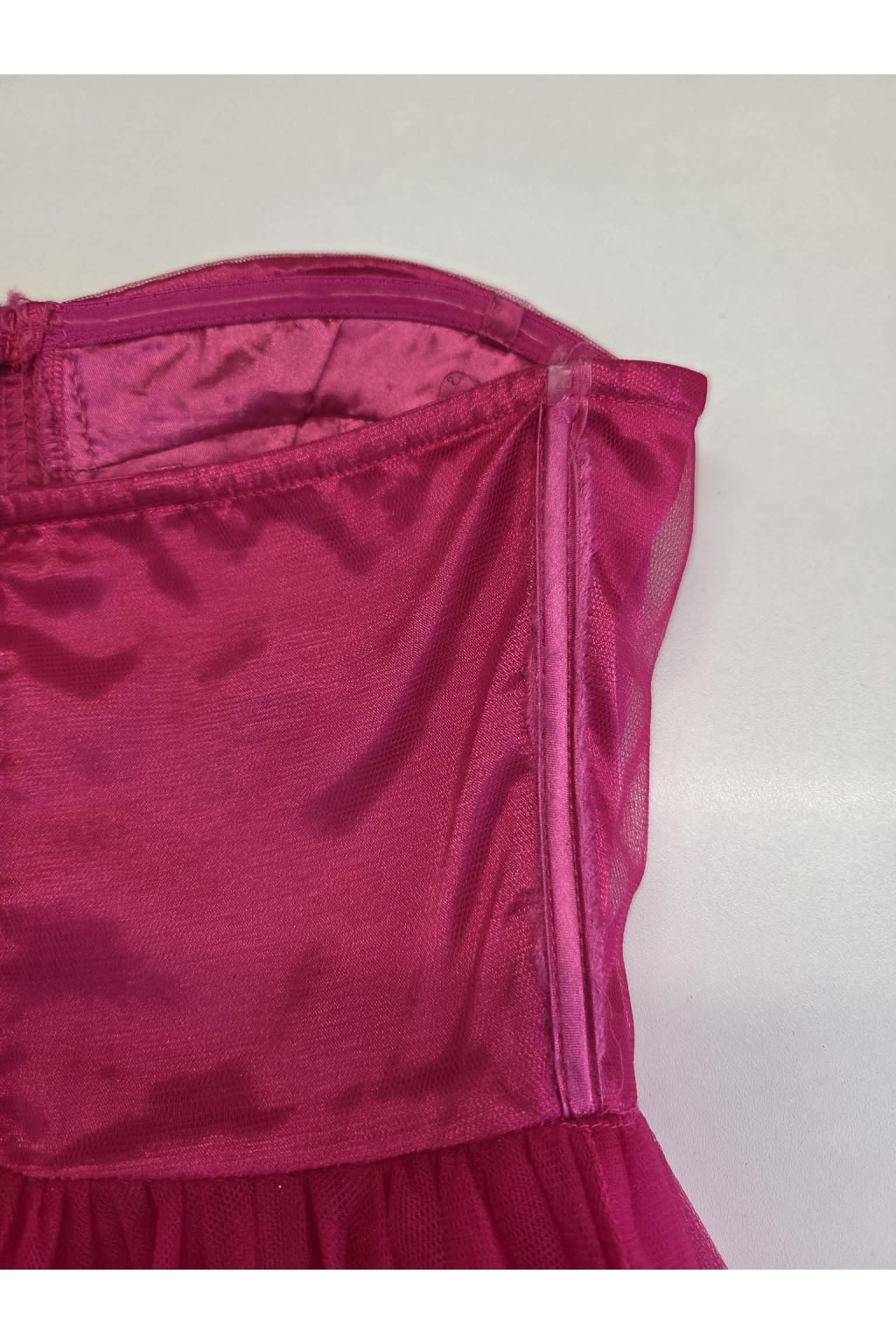 POZOR! Toto zboží je poškozeno, z tohoto důvodu má sníženou cenu. Šaty mají dírky v oblasti, kde jsou kostice zašité a zežmolkovaný materiál.