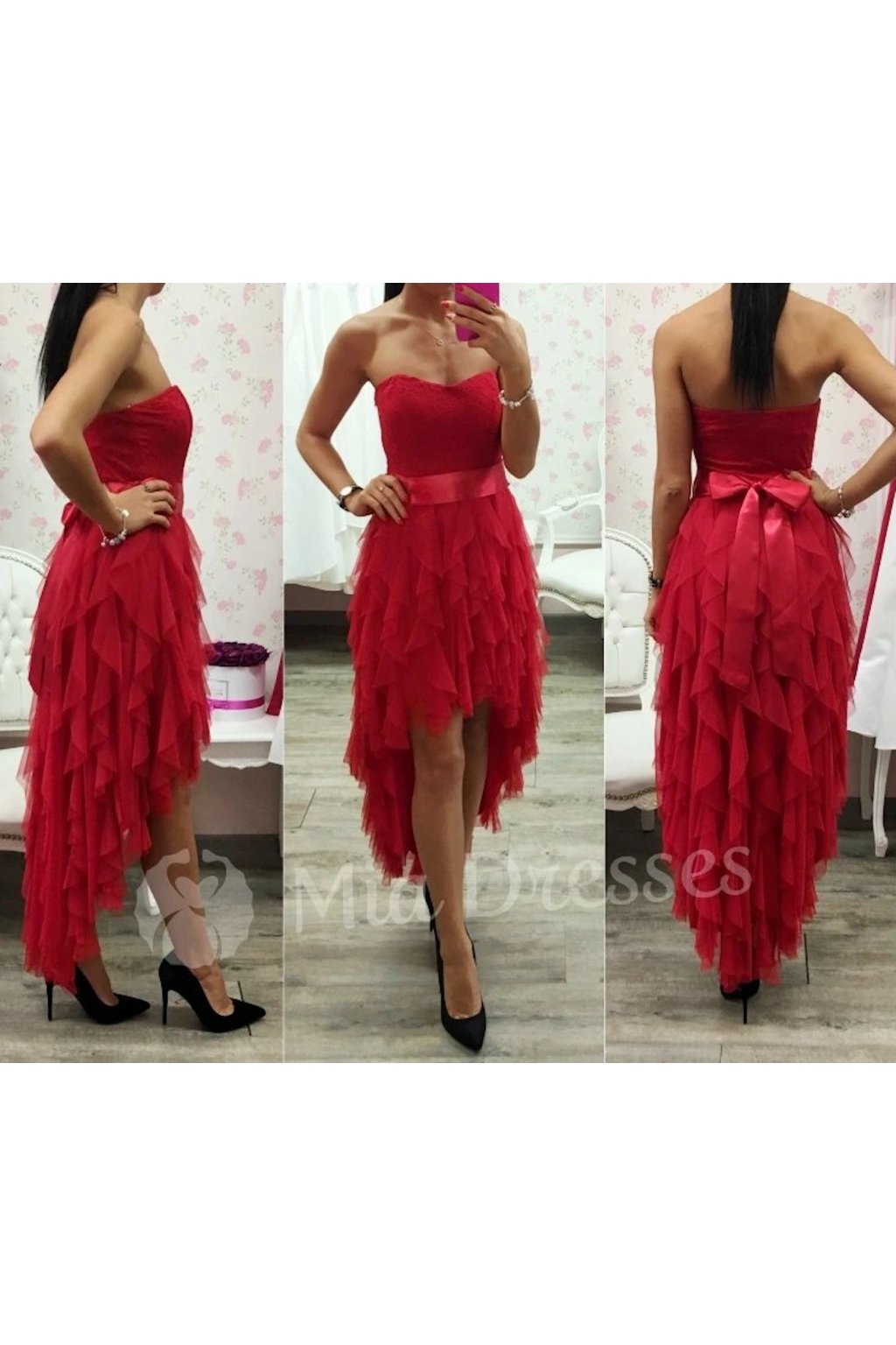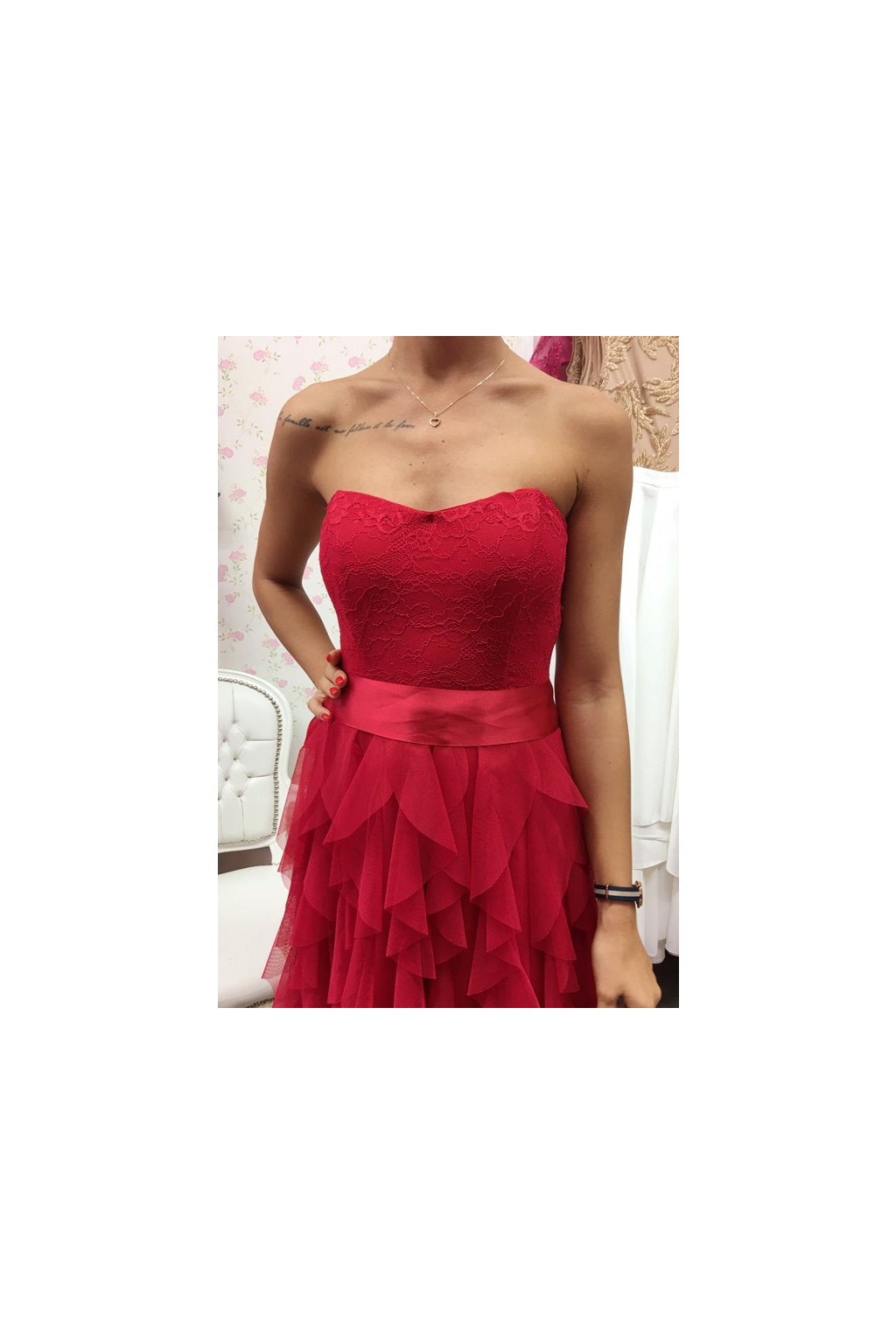 Poškozené zboží - Červené asymetrické šaty se stuhou