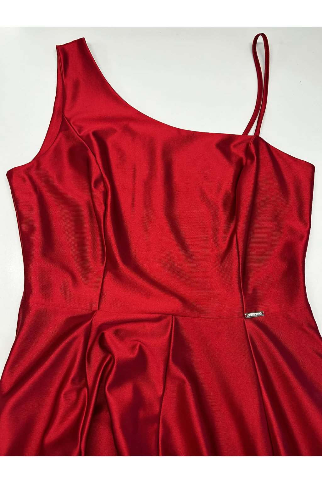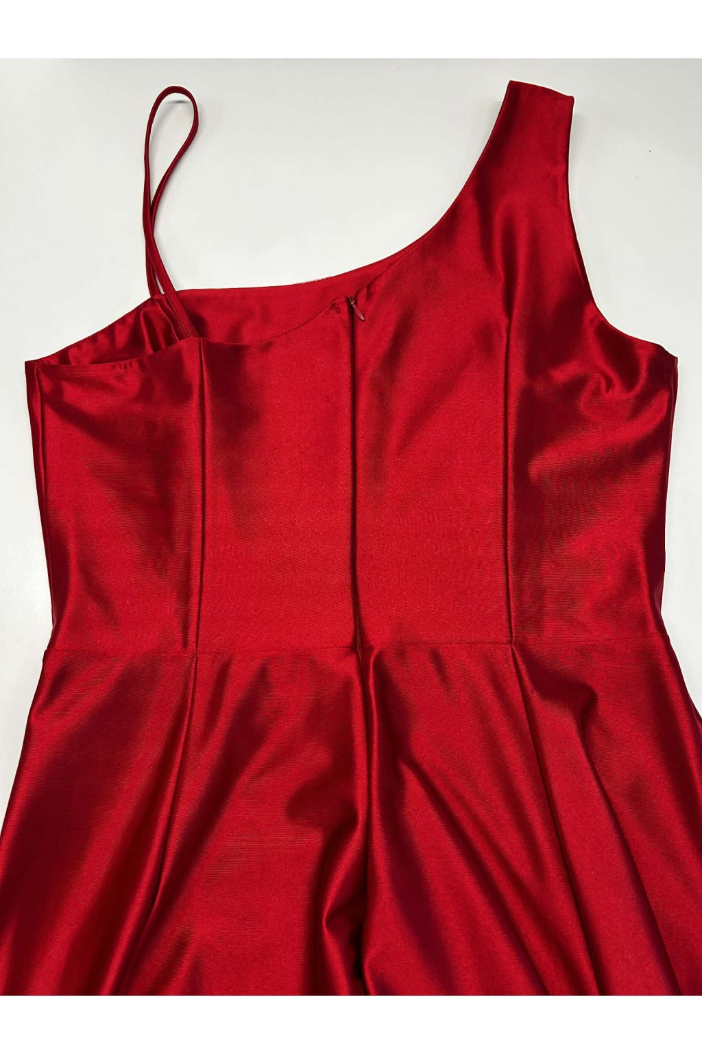 Poškozené zboží - Červené lesklé šaty s rozparkem