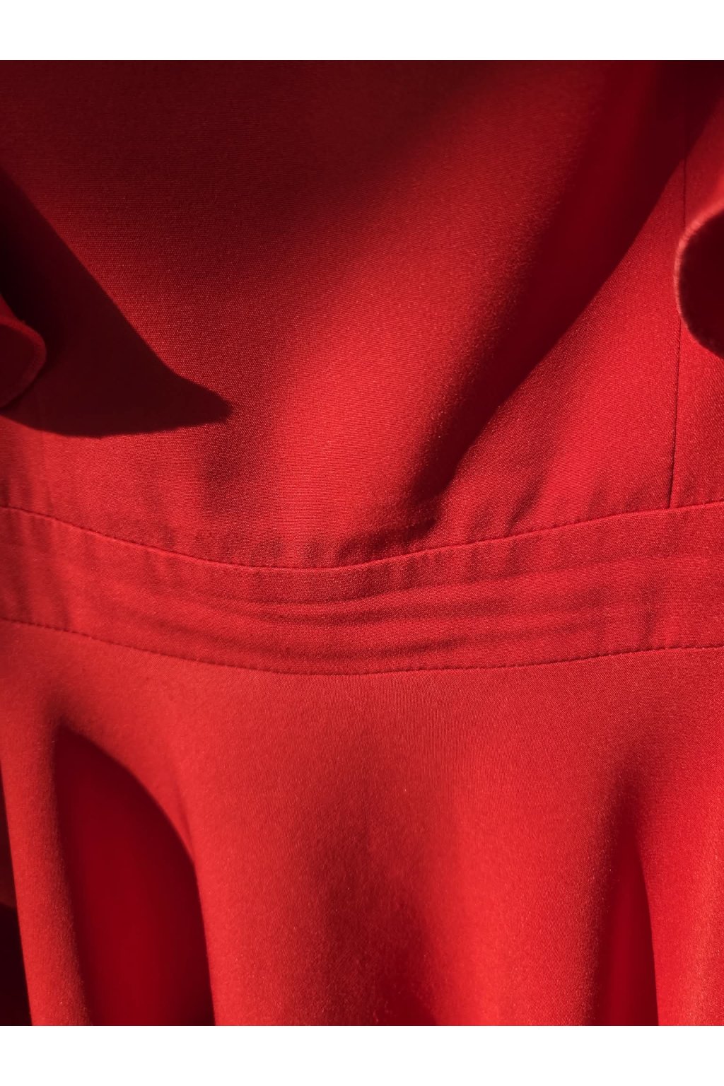 Poškozené zboží - Červené midi šaty s volánovými rukávy