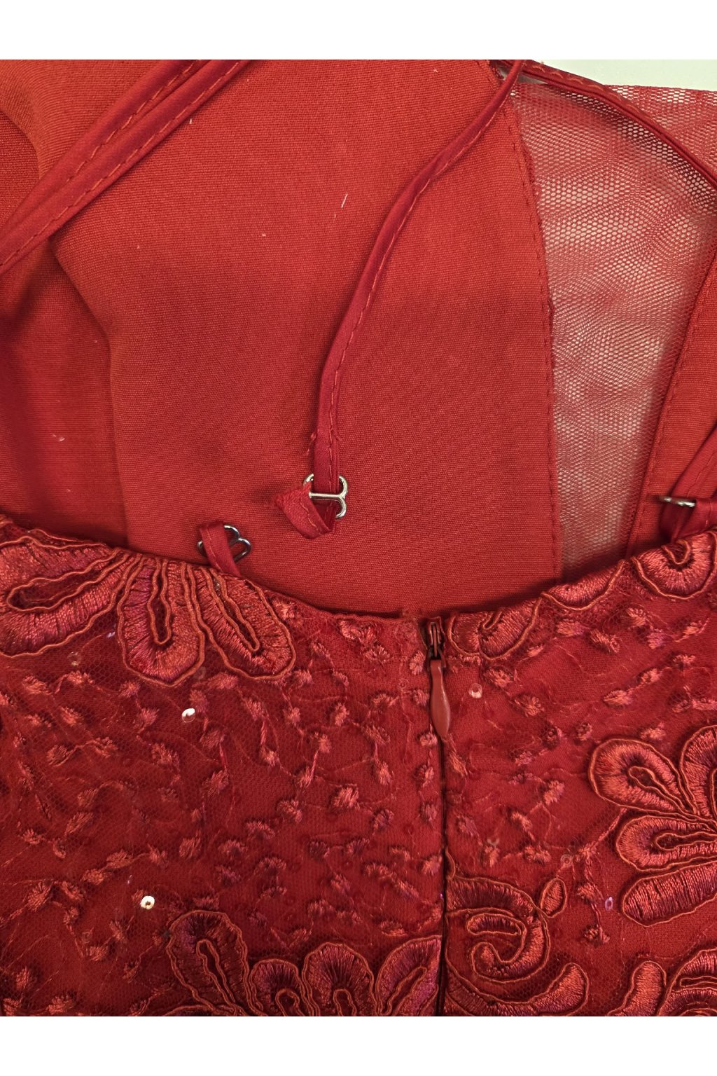 Poškozené zboží - Červené společenské šaty se saténovou sukní
