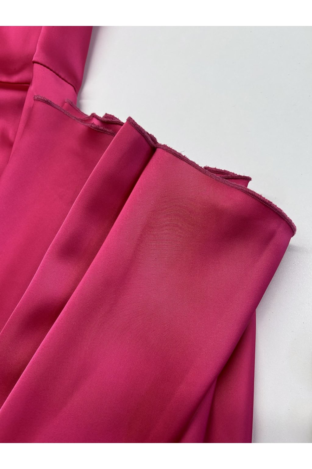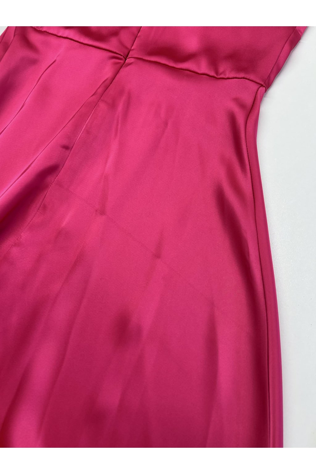 Poškozené zboží - Cyklámenové saténové šaty s rozparkem