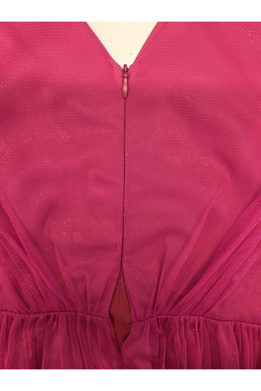 Poškozené zboží - Cyklámenové tylové midi šaty s jemnými flitry