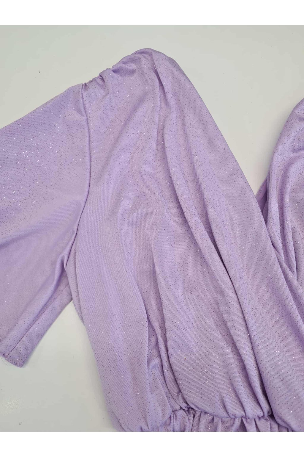 Poškozené zboží - Fialové třpytivé šaty s rozparkem