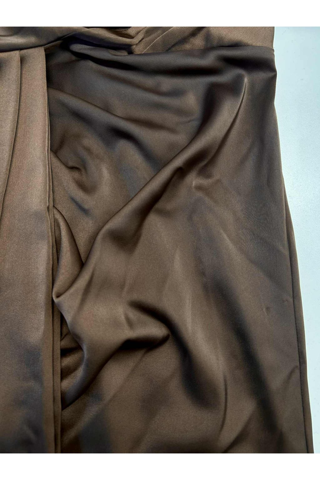 Poškozené zboží - Hnědé přiléhavé šaty spuštěné na ramena