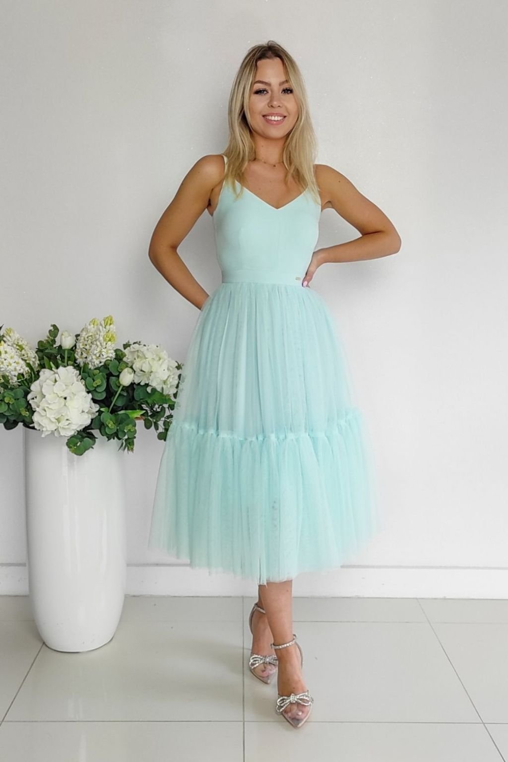 Poškozené zboží - Mentolové midi šaty s týlní sukní