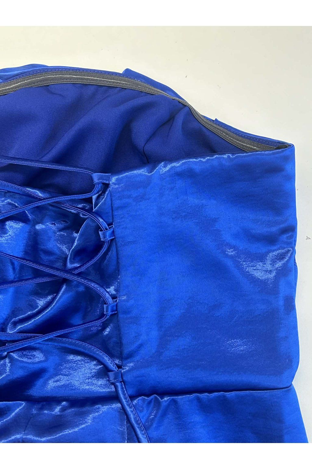 Poškozené zboží - Modré přiléhavé šaty s růží