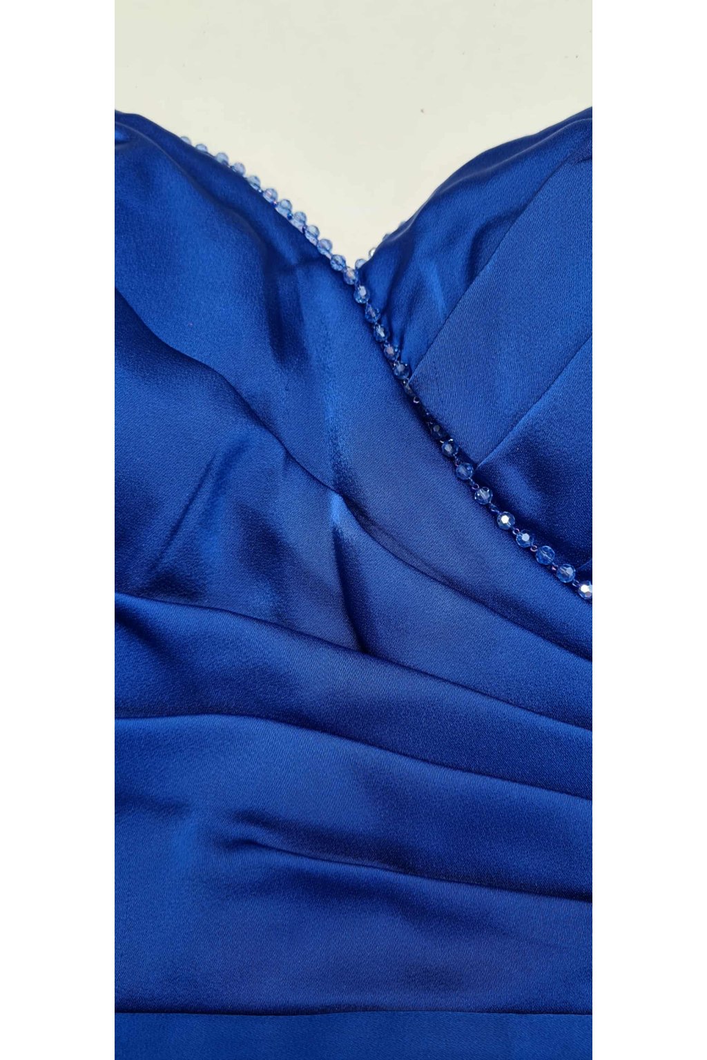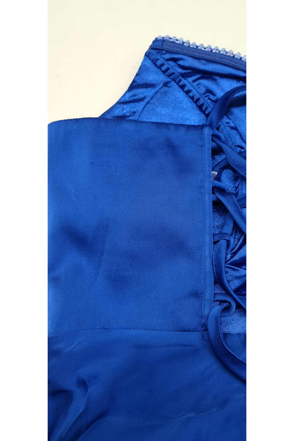Poškozené zboží - Modré saténové šaty s rozparkem
