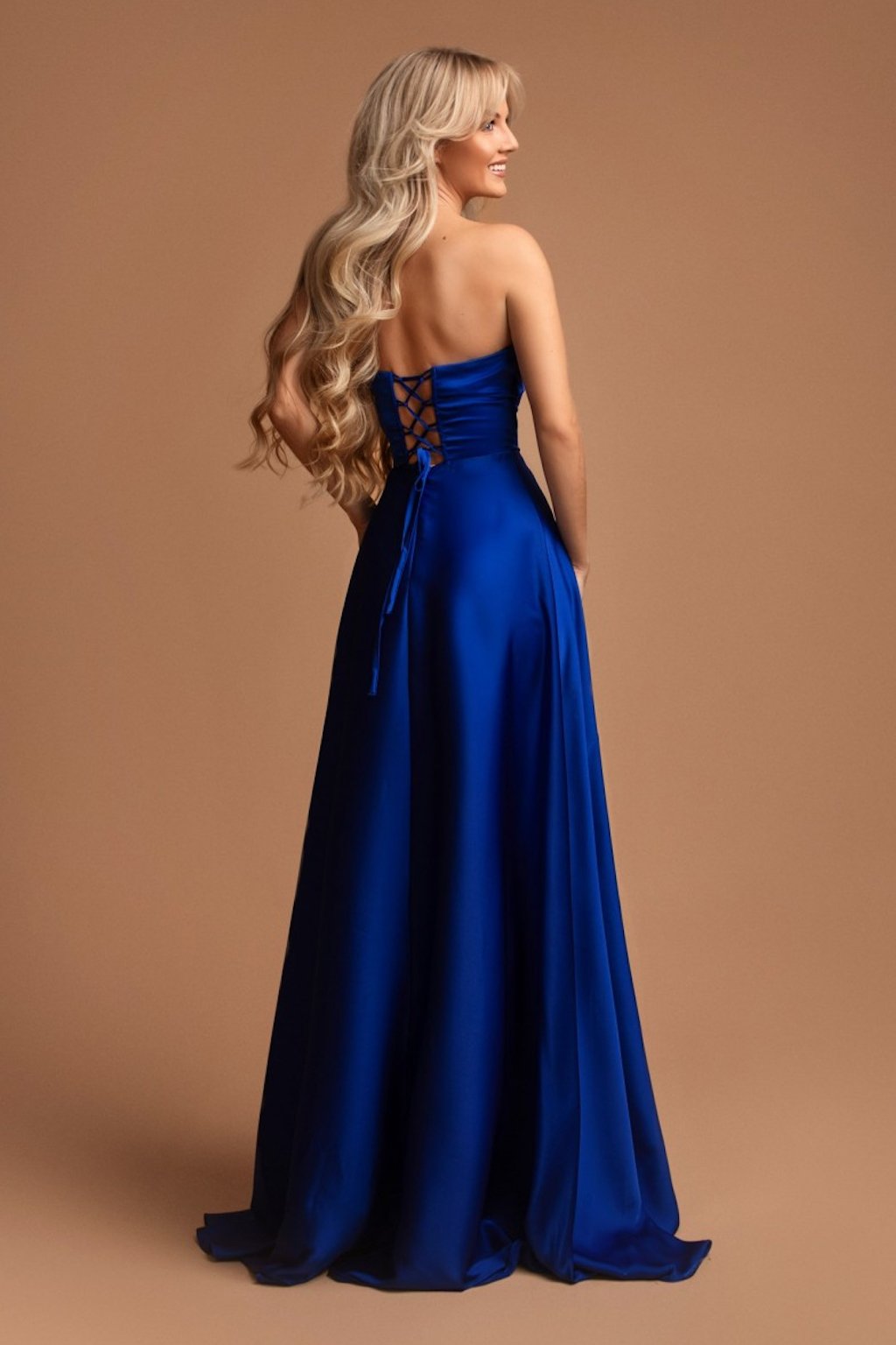 Satén je zárukou podmanivého vzhledu s velkou dávkou elegance a noblesy a tyto saténové šaty nejsou vyjímkou. K dokonalému vzhledu přispěje rozparek a decentní kamínky, které zdobí dekolt. Šaty jsou na prsou vyztužené, na zádech mají šněrování a na sukni se zapínají zipem. Součástí šatů jsou odnímatelná ramínka.