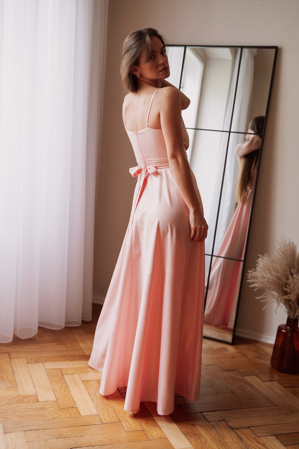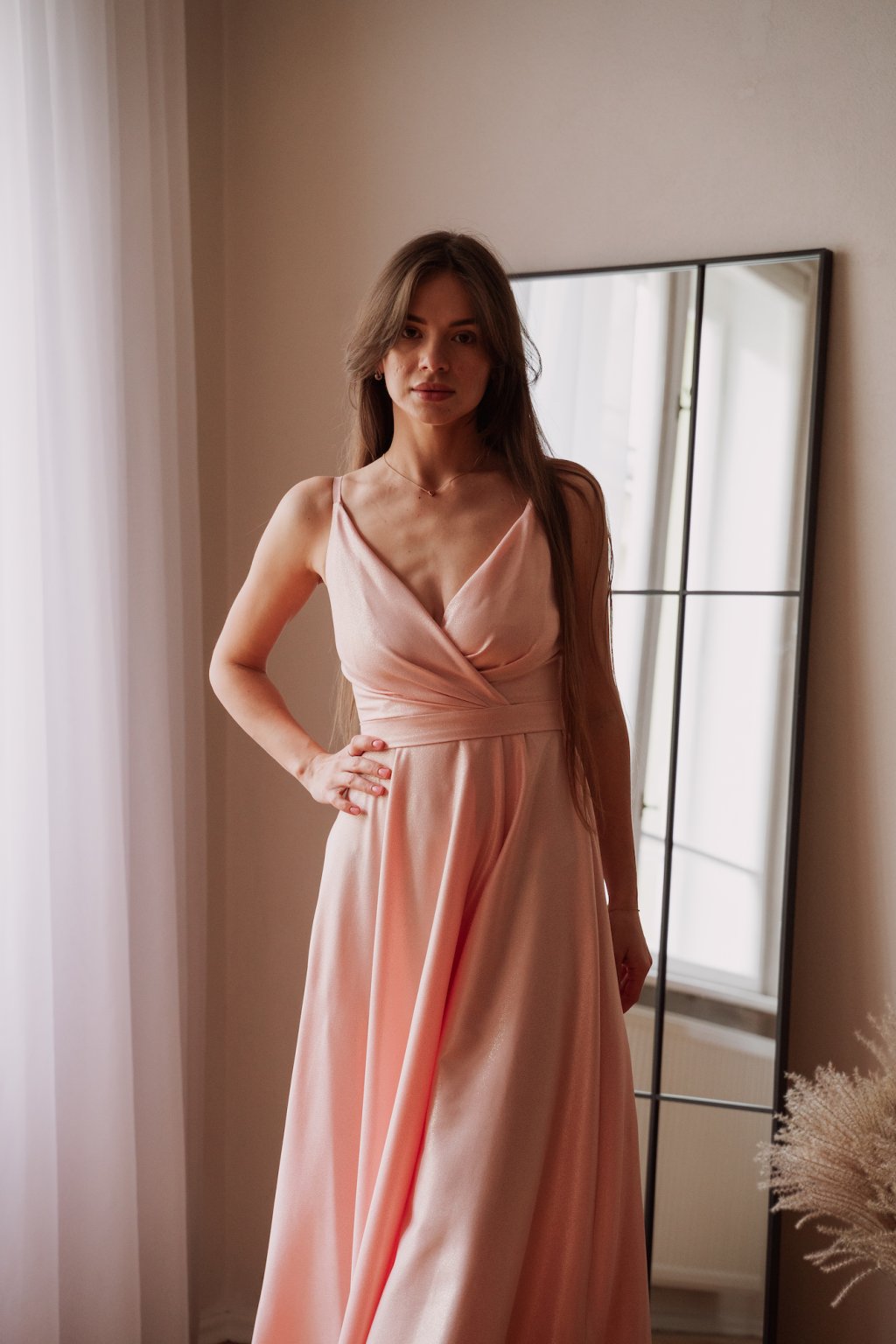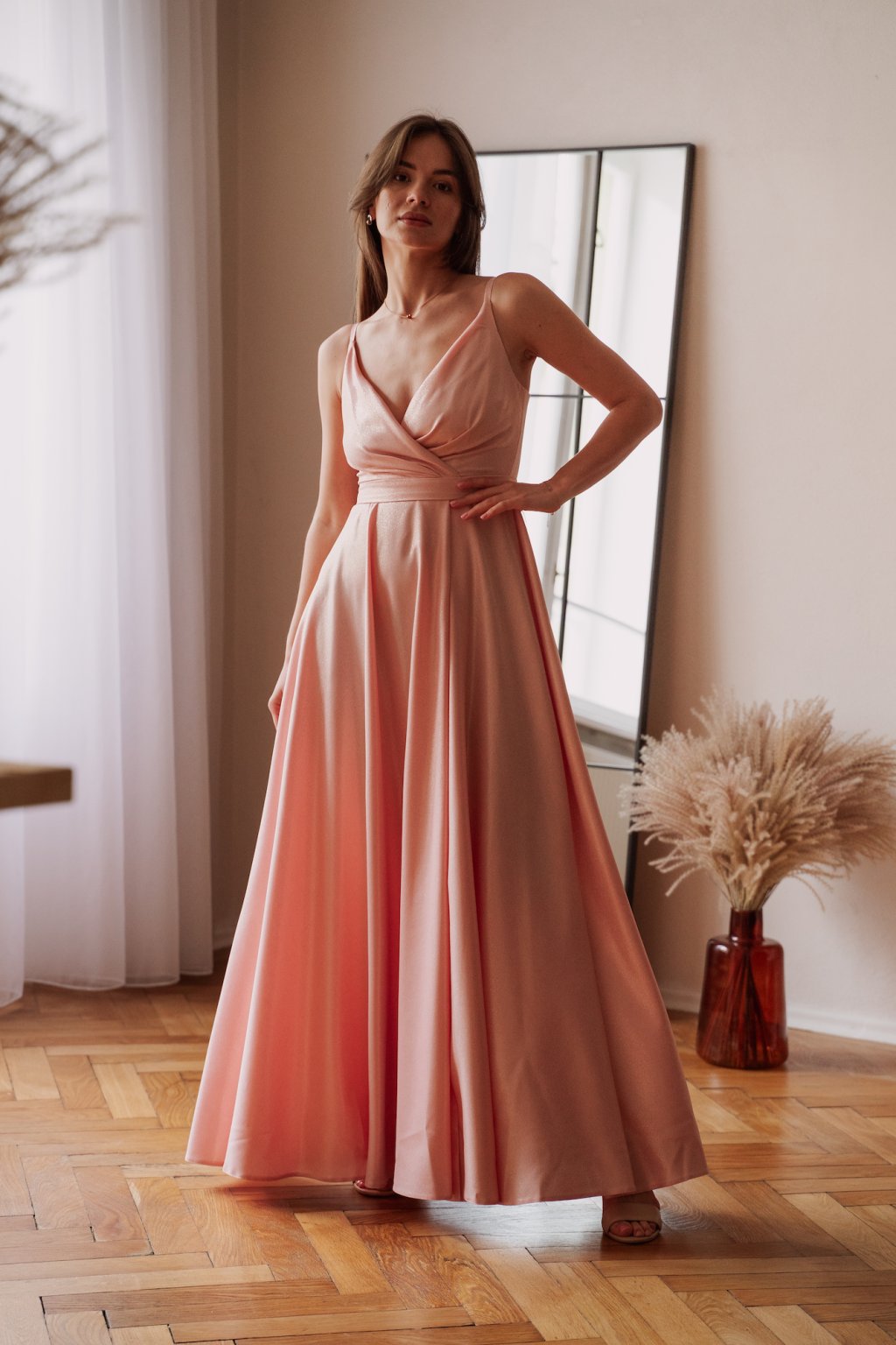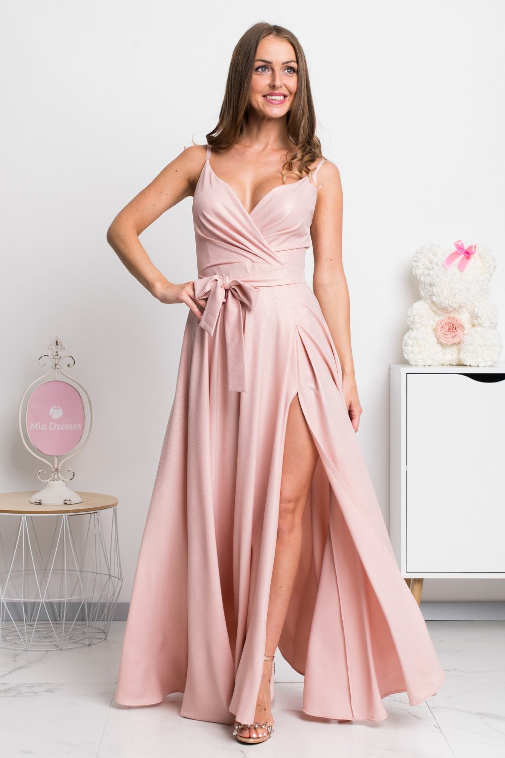 Poškozené zboží - Pudrové společenské šaty s jemnými flitry