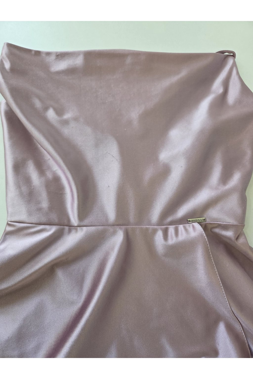 Poškozené zboží - Růžové lesklé šaty s rozparkem