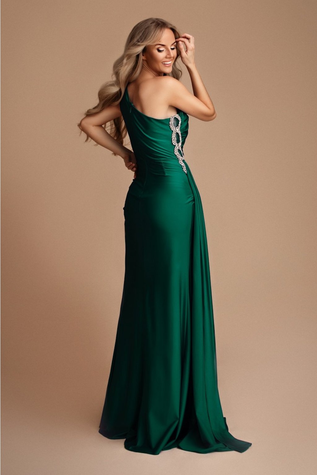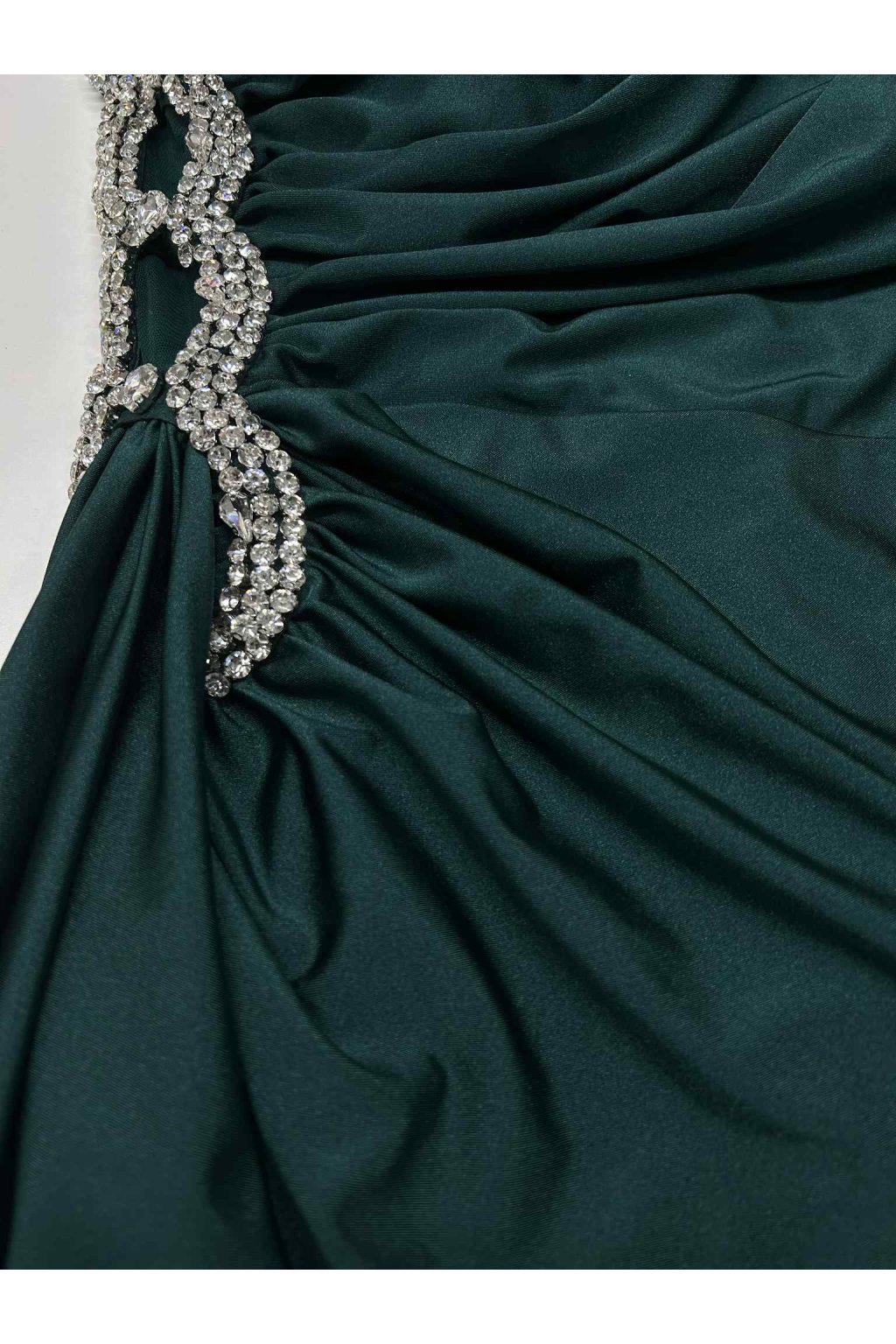 Poškozené zboží - Smaragdové přiléhavé šaty se stříbrnou aplikací