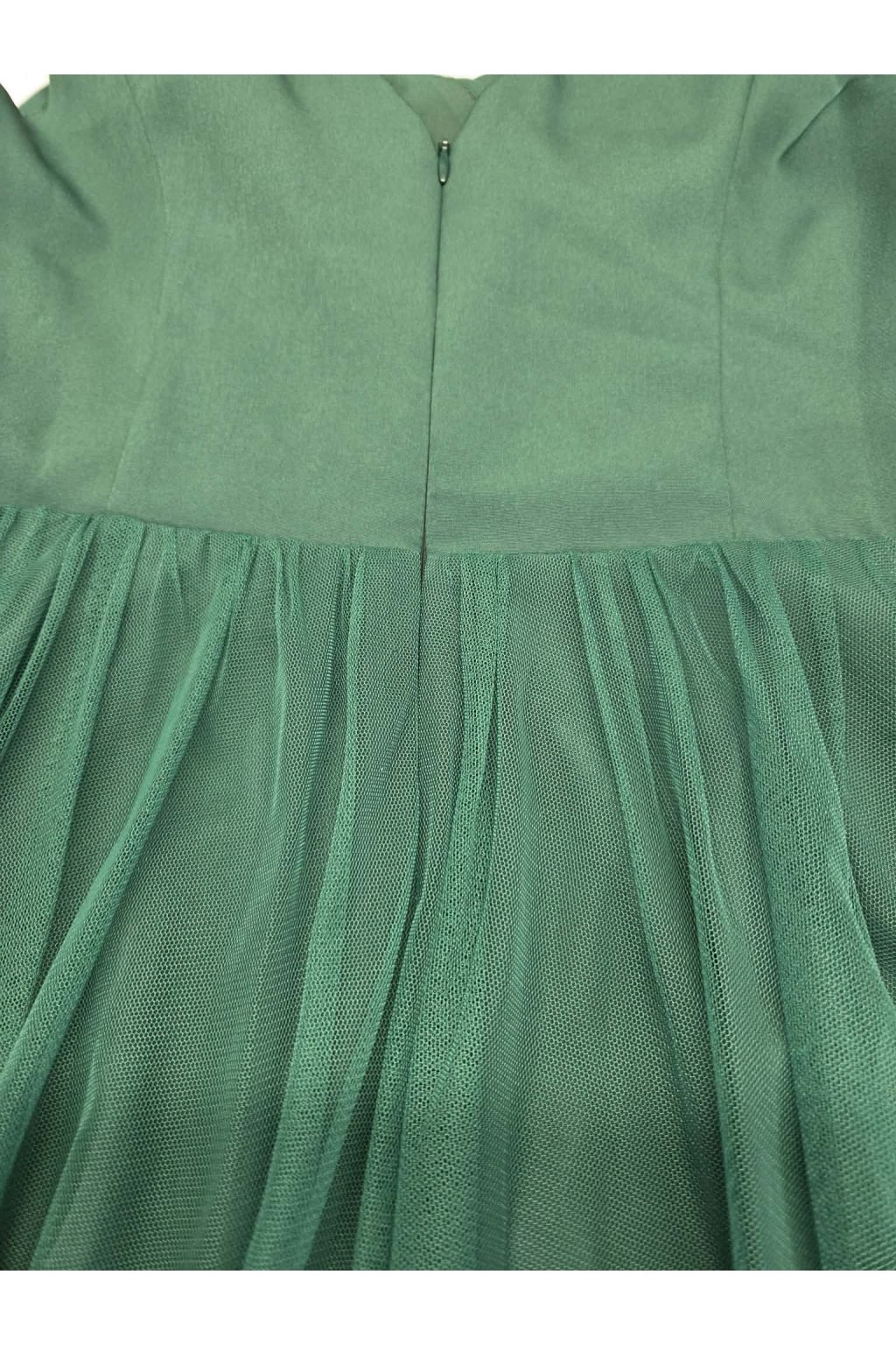 Poškozené zboží - Smaragdové společenské šaty s týlní sukní